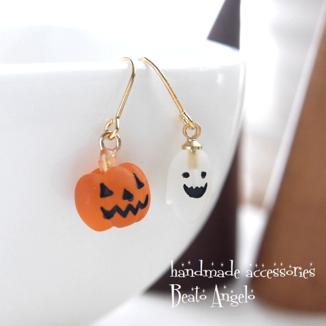 かぼちゃとおばけのハロウィンピアス(p-007)G