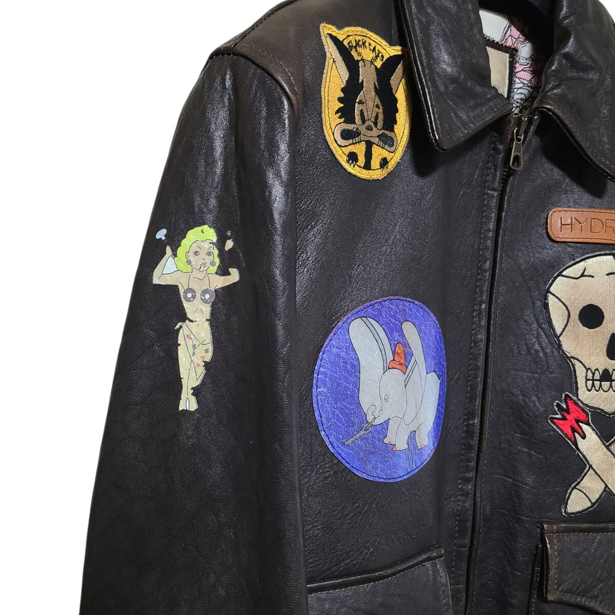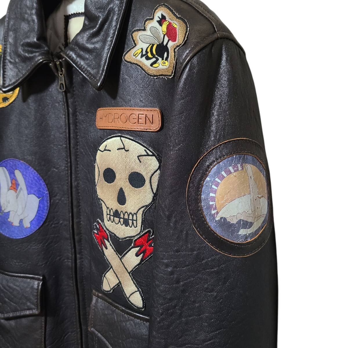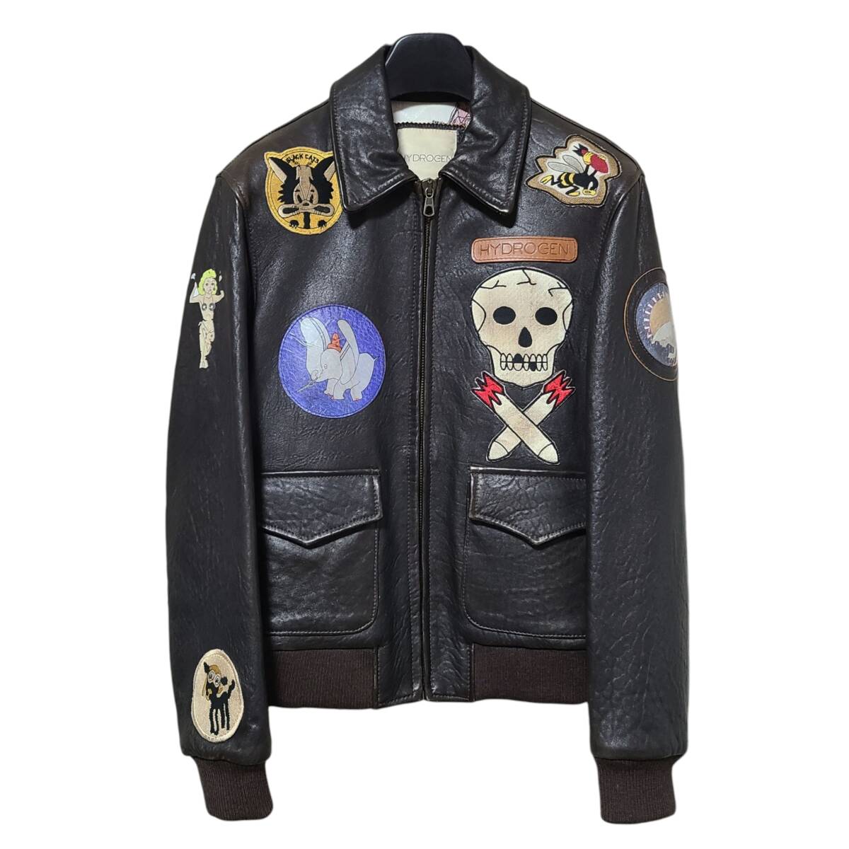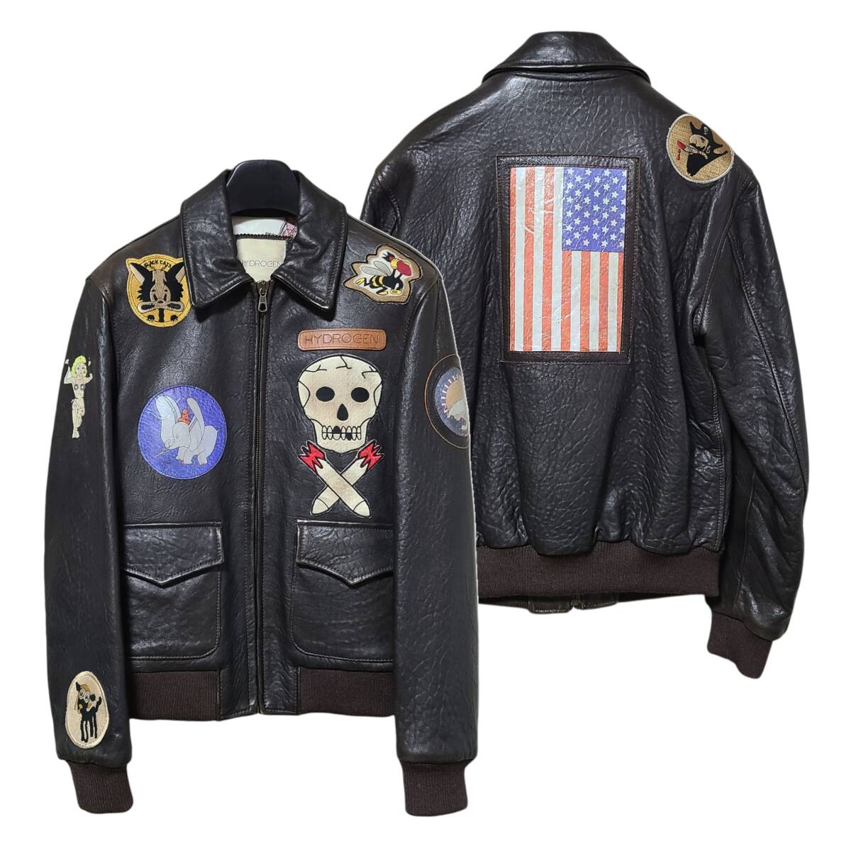 【レア クリーニング済】 ITALY製 45万 HYDROGEN ハイドロゲン 本革 レザー A-2 フライトジャケット フルデコ ワッペン