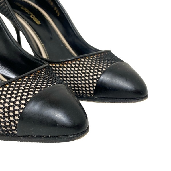セルジオロッシ sergio rossi パンプス 36 1/2 - レザー 黒×ベージュ レディース メッシュ 靴