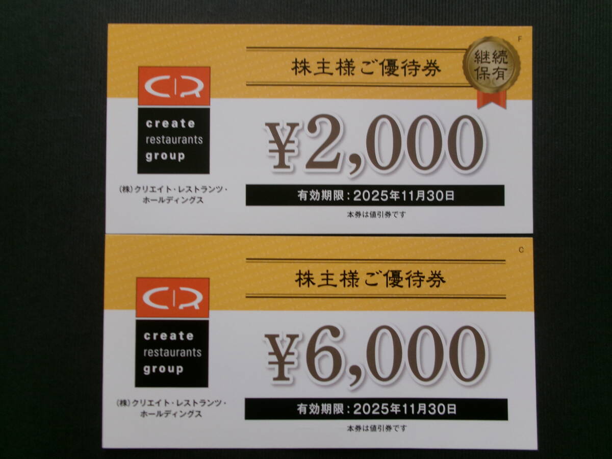 ☆ クリエイト・レストランツ 株主優待券 8000円分  ☆