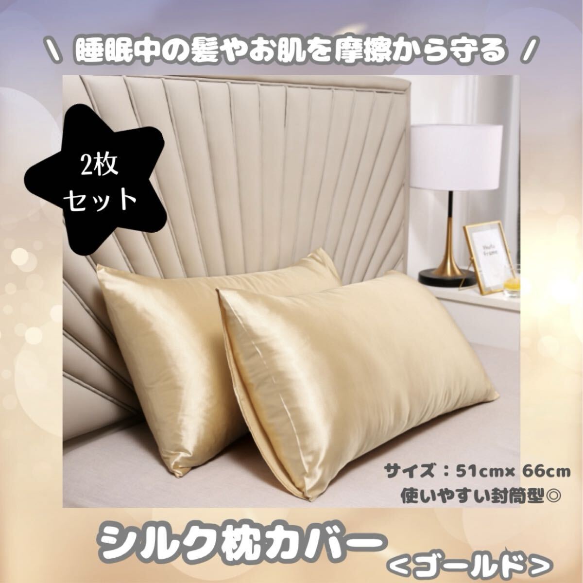 【ゴールド】シルク枕カバー 2枚組 美髪 美肌 ダメージ防止