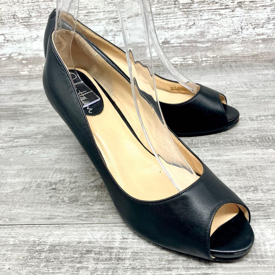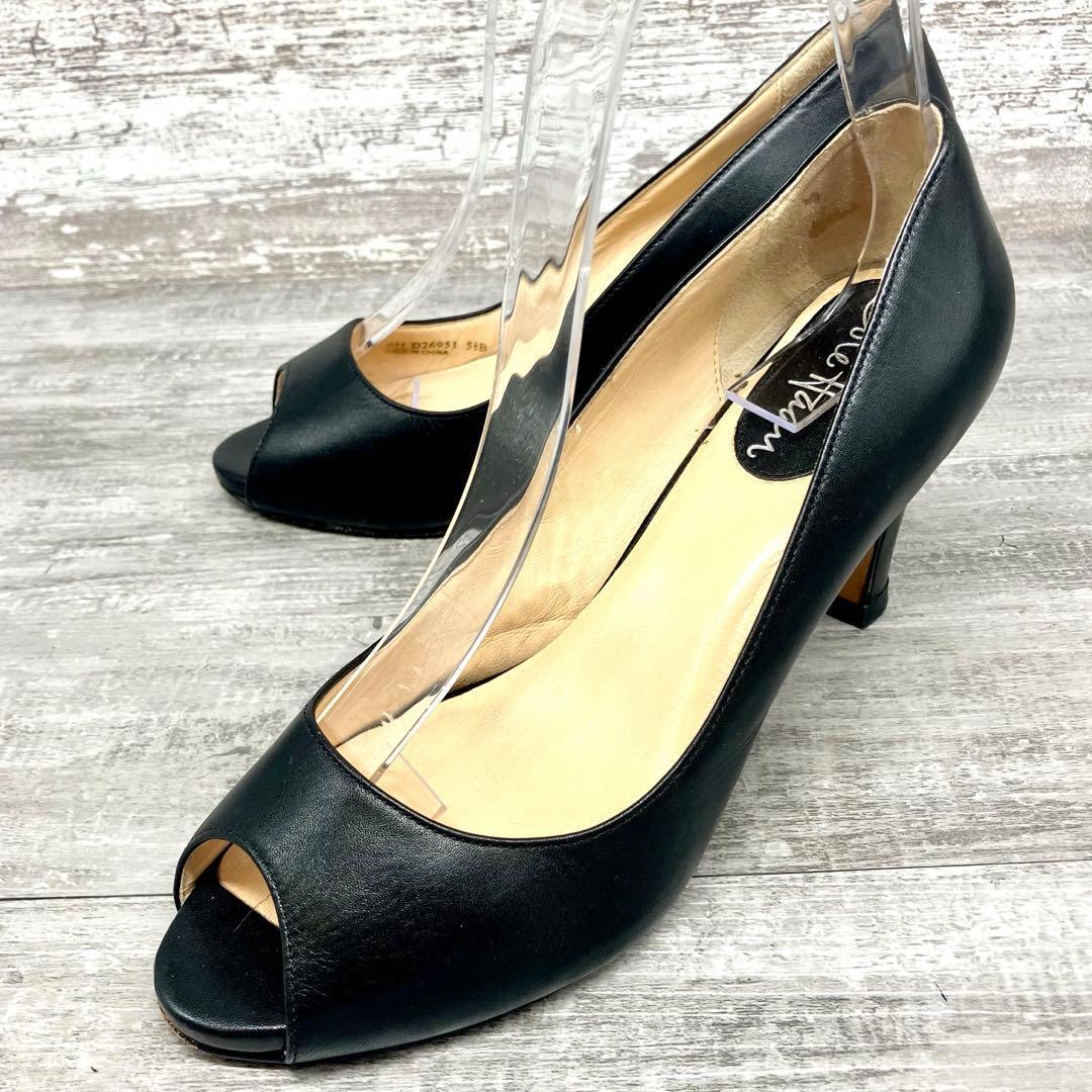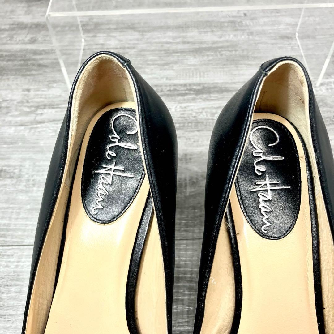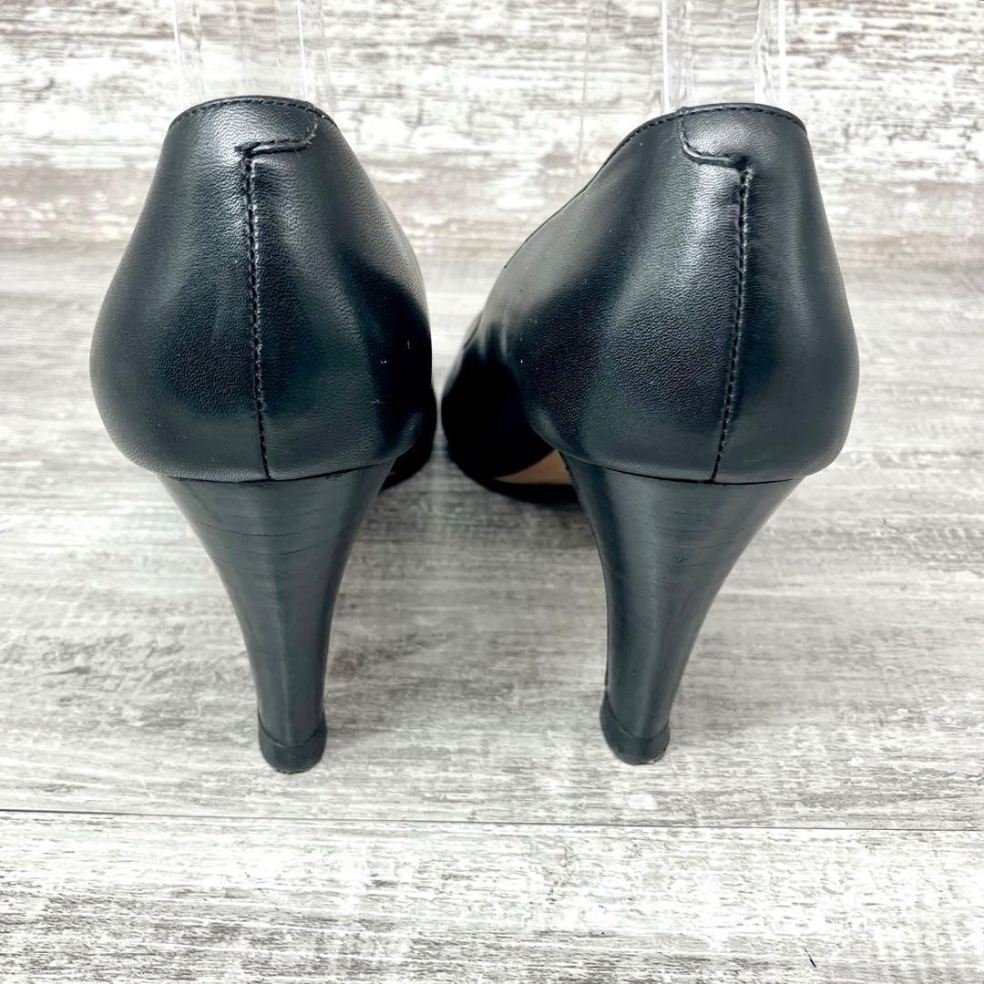137【美品】COLE HAAN コールハーン レザーパンプス オープントゥ ハイヒール ピンヒール 黒 ブラック 22.5cm 【5 1/2】 パーティー