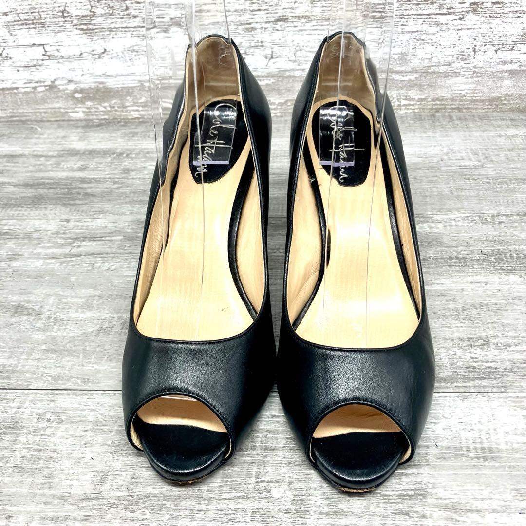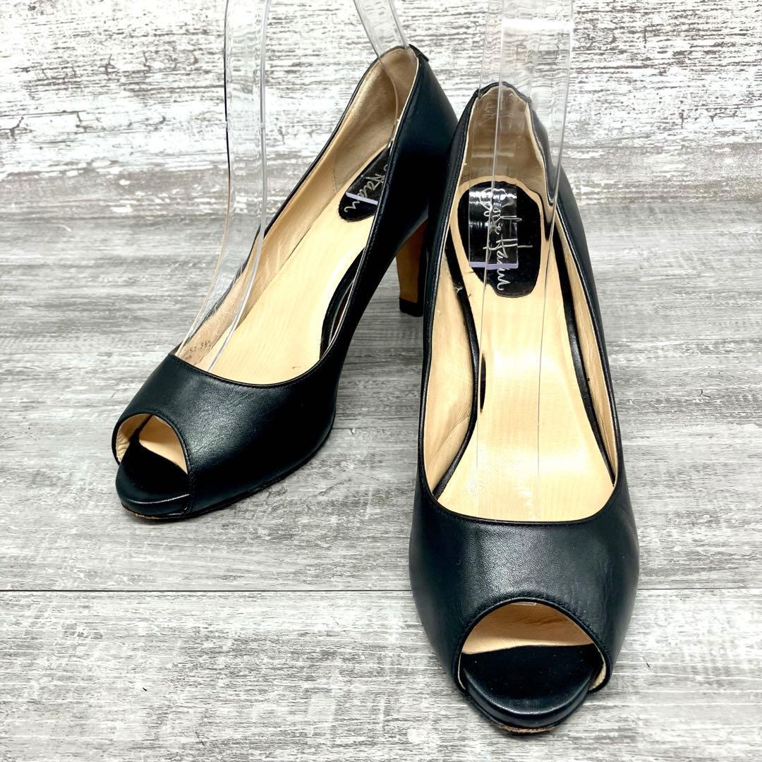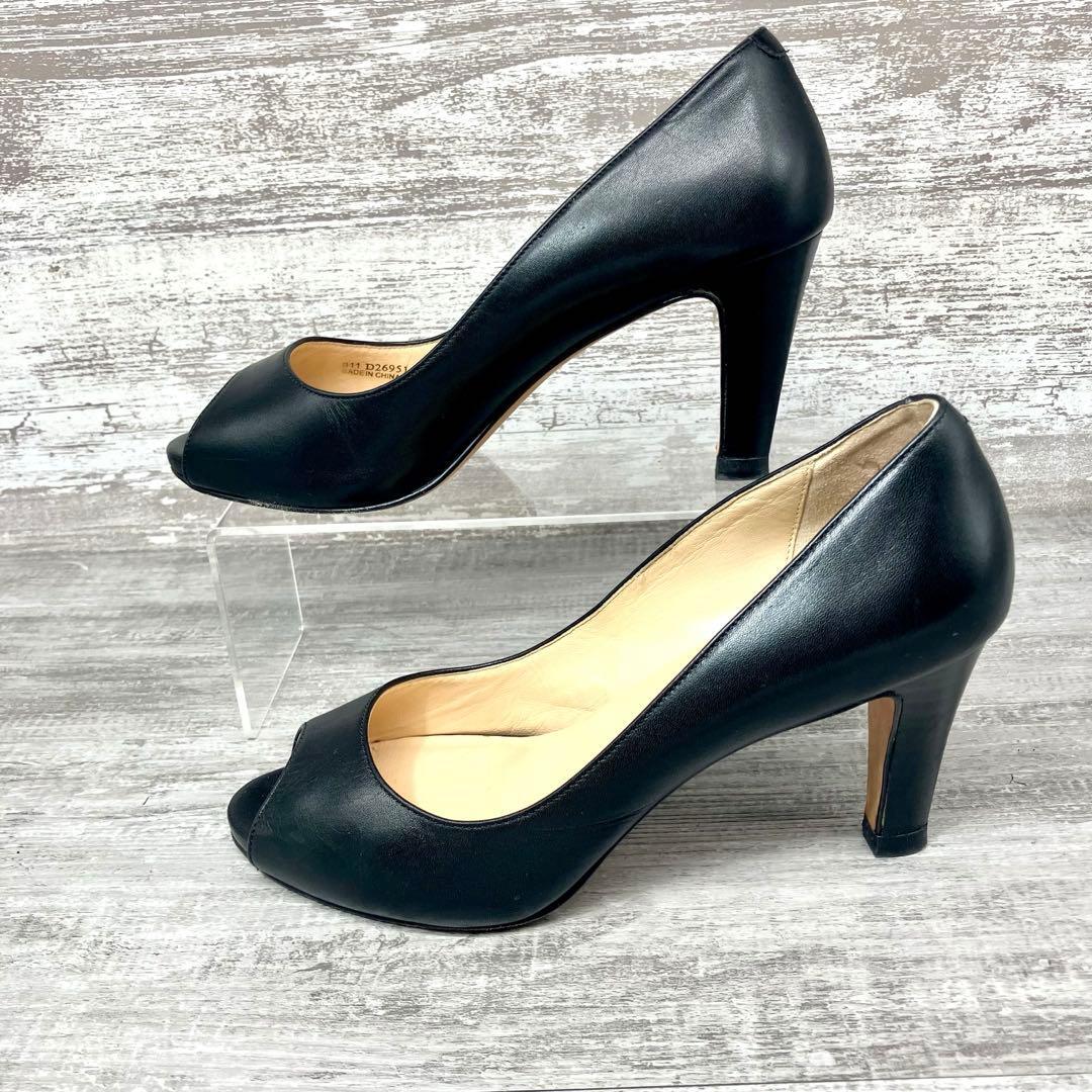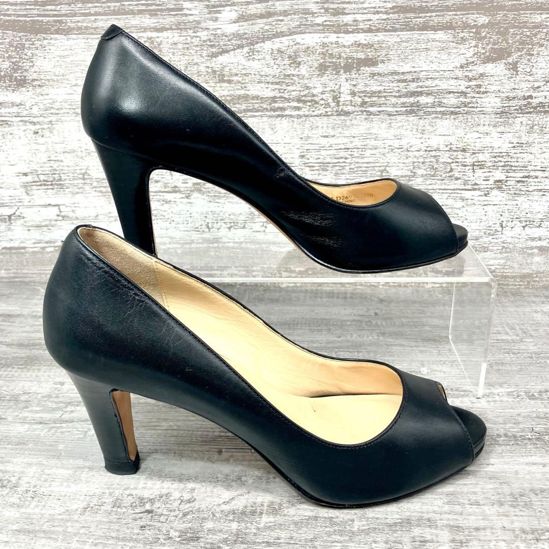 137【美品】COLE HAAN コールハーン レザーパンプス オープントゥ ハイヒール ピンヒール 黒 ブラック 22.5cm 【5 1/2】 パーティー