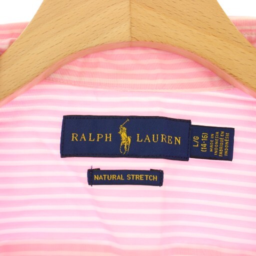 ラルフローレン RALPH LAUREN シャツ NATURAL STRETCH 長袖 ストライプ柄 刺繍 L/G 14-16 ピンク 0200000990 /TK キッズ