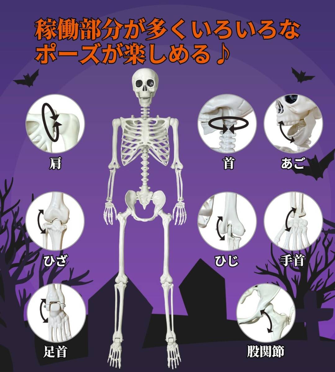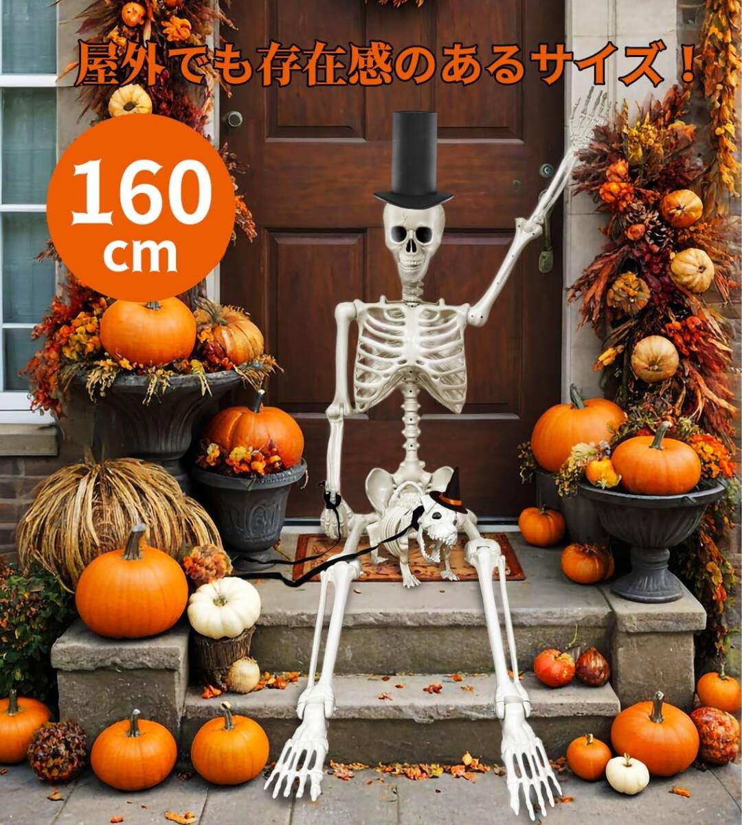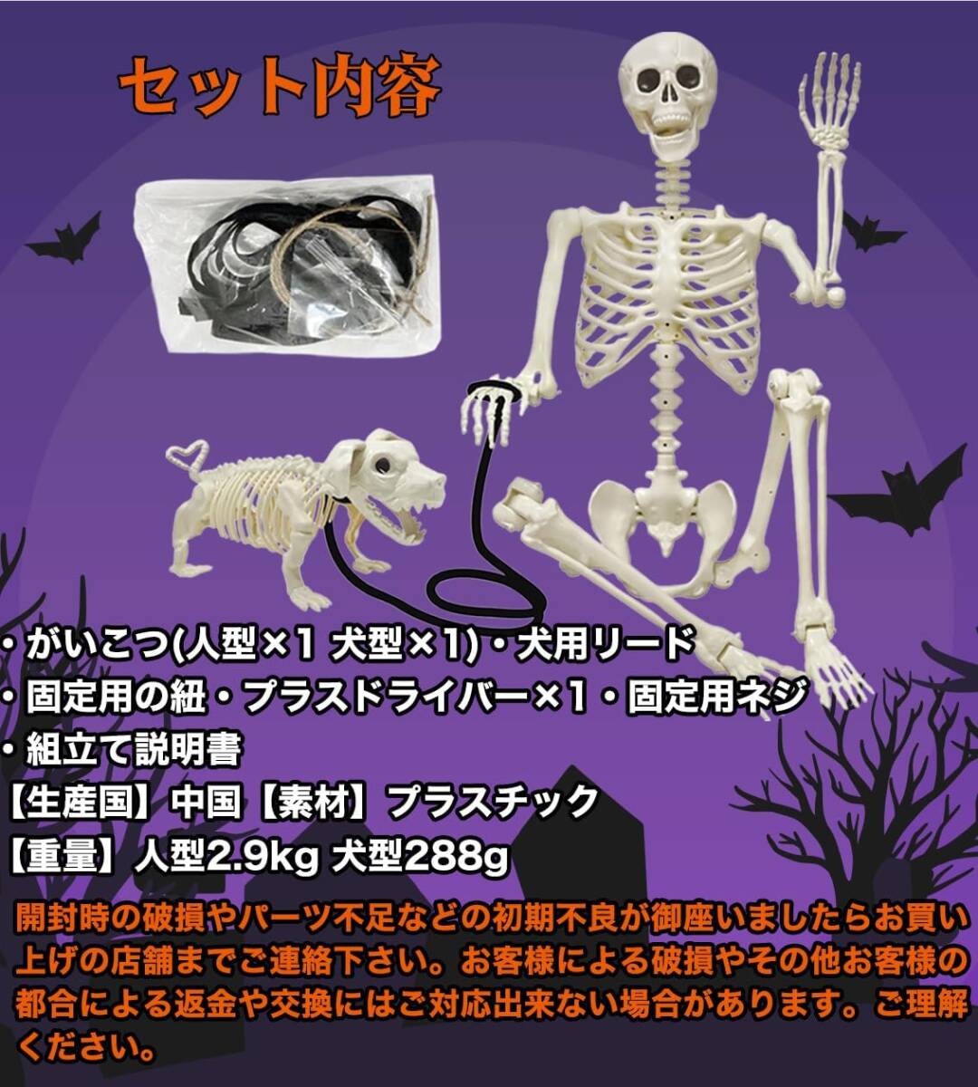 大きい!人間サイズでビックリ ハロウィン 骸骨 160cm 飾り 犬の骸骨 付き セット 動く 置物 プラクチック製 軽量 がいこつ 人形