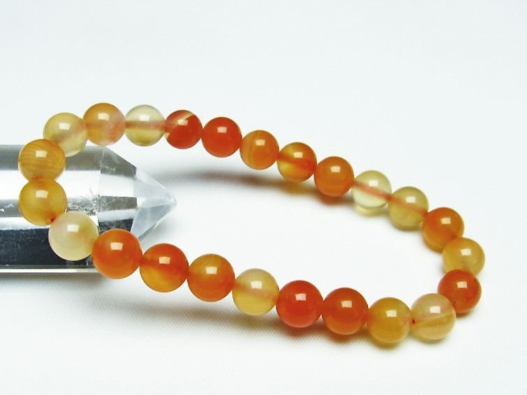 ■商品名: アゲートブレスレット ■商品ID: T85-10201 ■商品重量:約 17.5g ■商品サイズ:内周約:161mm(±5mm)粒直径約:8mm(±0.5mm) 【アゲート(瑪瑙)】 和名では瑪瑙(めのう)といい、アゲートの模様が馬の脳のように見える事からこのような名前が付けられました。 アゲートは赤、緑、青、黄、黒など、様々な色に着色されることで石本来のパワーがさらにアップするといわれており、着色により魅力を増す天然石はアゲートだけとも言えます。 さらにはアゲートを組み合わせるとペアになっているペアアゲート(トレジャーメノウ)は龍穴を生み出すとされ、風水的にも良いといわれています。 アゲートは古来より日本やインドやチベットなどで魔よけやお守りとされてきました。 失敗や不幸を遠ざけ金運や仕事運、成功運とも結び付けてくれる効果のほか、安産のお守りにも良いとされています。 さらに家庭円満や対人関係をスムーズにするなど、オールマイティな効果を持った石です。 ⇒ アゲートをもっと詳しく ◆ワンポイント情報 アゲートはカルセドニーの変種で、染色がされていなくともそれぞれの種類に多様な色があります。 ざっと仲間を挙げてみてもオニキス(黒)、サードニクス(橙色)、ブルーアゲート(青)、グリーンアゲート(緑)、イエローアゲート(黄)、ブルーレースアゲート(縞青)、モスアゲート(縞緑)、天眼石(縞黒)、カーネリアン(橙色)、ジャスパー(多様な縞)などとても多くの特徴と色合いを持っています。 |