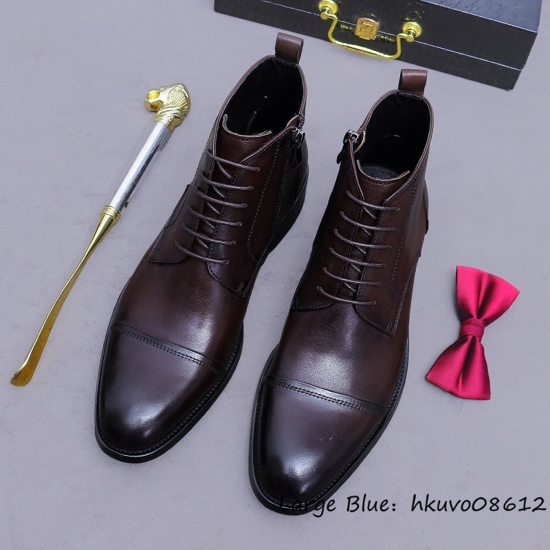 入手困難■ショートブーツ メンズ 高級牛革 レザーブーツ マーティンブーツ 本革 職人手作り オックスフォード フォーマル ブラウン 27.5cm