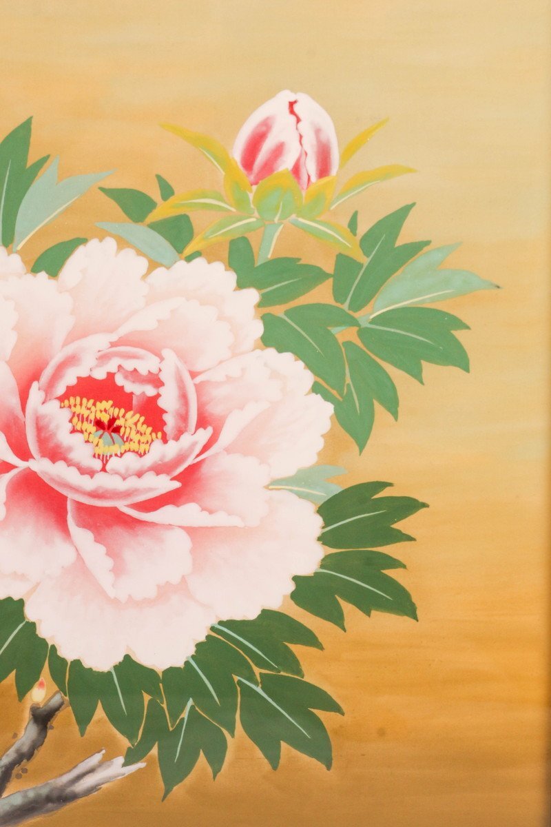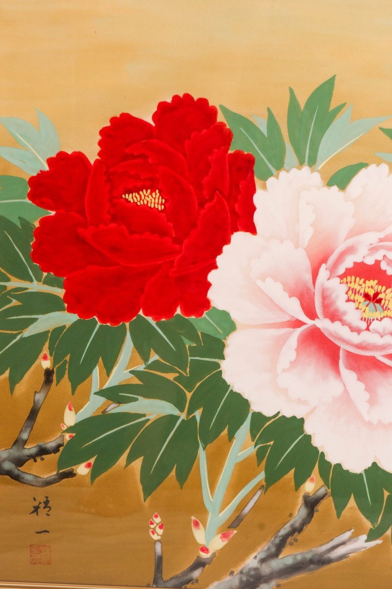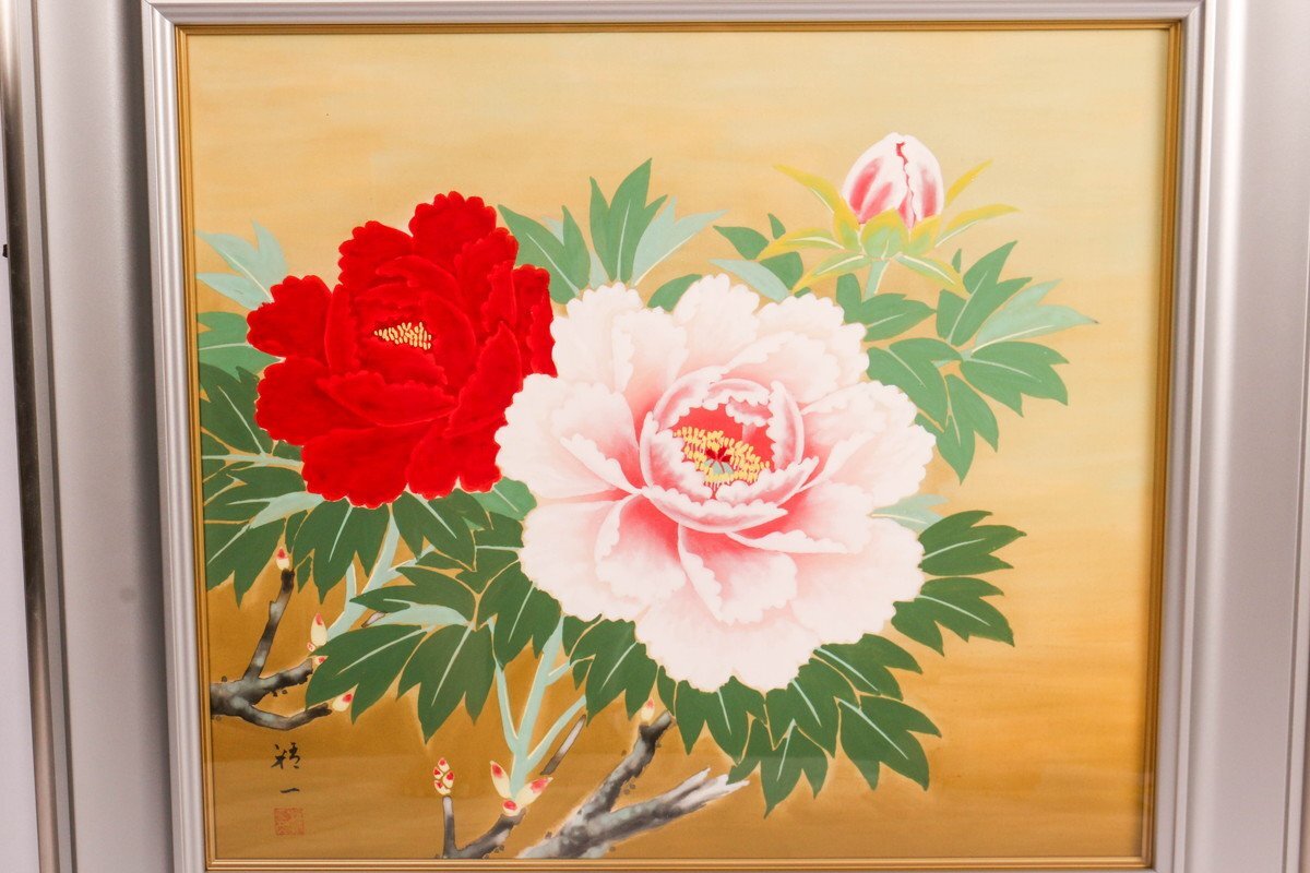 【SAG】箱山精一 『牡丹』肉筆 日本画 絹本 直筆サイン 落款 額装 タトウ箱 本物保証