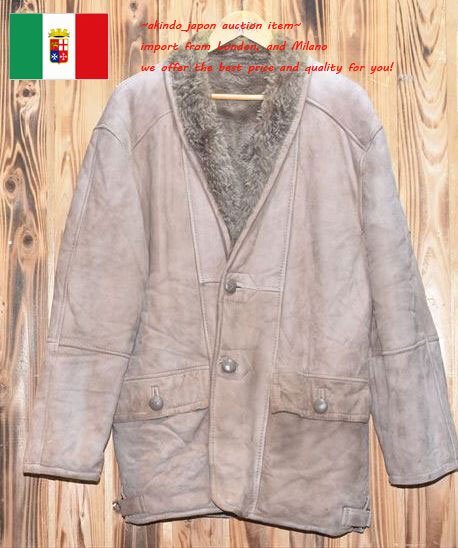 SHEARLING★イタリア製★良質 シープスキンムートン レザージャケット コート XL (SP-060)  メンズ ユーロ古着