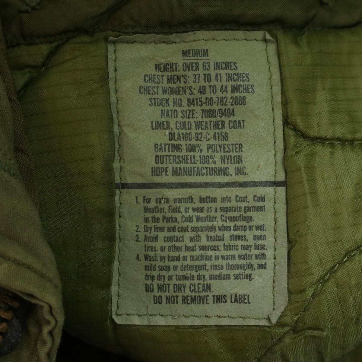 | 【商品管理番号】 A3859 【ブランド】 /米軍実物 U.S.ARMY 【サイズ】 MEDIUM REGULAR 【実寸サイズ】 肩幅:約51cm 着丈:約75cm 身幅:約59cm 袖丈:約62cm 【主な素材】 表地 : コットン 【色】 オリーブ 【仕様】 70年代 1978年 フード収納可能、ウエストドローコード ミリタリー M-65 フィールドジャケット 3rd 【状態】 破れ: ライナー 特記事項:使用感あり 【付属品】 キルティングライナー付 | |||