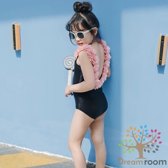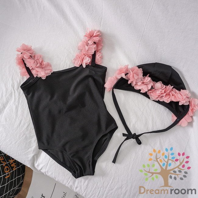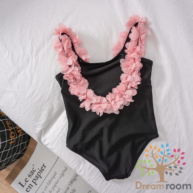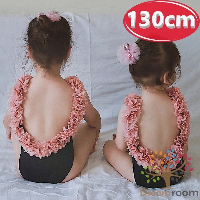 1スタ☆【130cm】フラワーフリル セパレート 水着 ブラック 子供服 女の子 韓国子供服 ビーチ 海 プール K-203