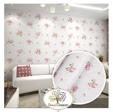 送料込 3D エレガント B196 ローズ 白×pk 10m ストーン 壁紙 北欧 インテリア はがせるシール DIY ウォールペーパー 糊付き