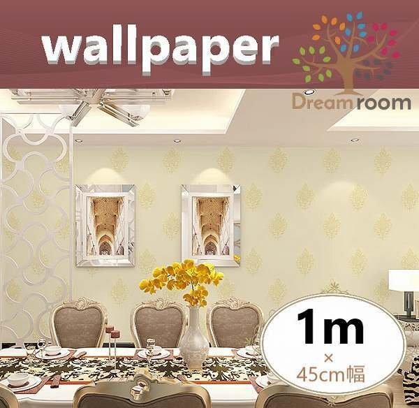 少量パック【 1m 】 ダマスク柄 白×ゴールド 壁紙 アンティーク ウォールペーパー北欧風 インテリア リビング はがせる シール DIY