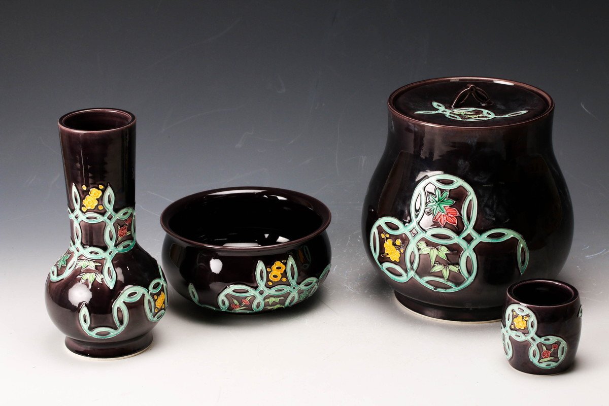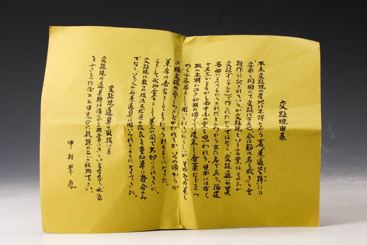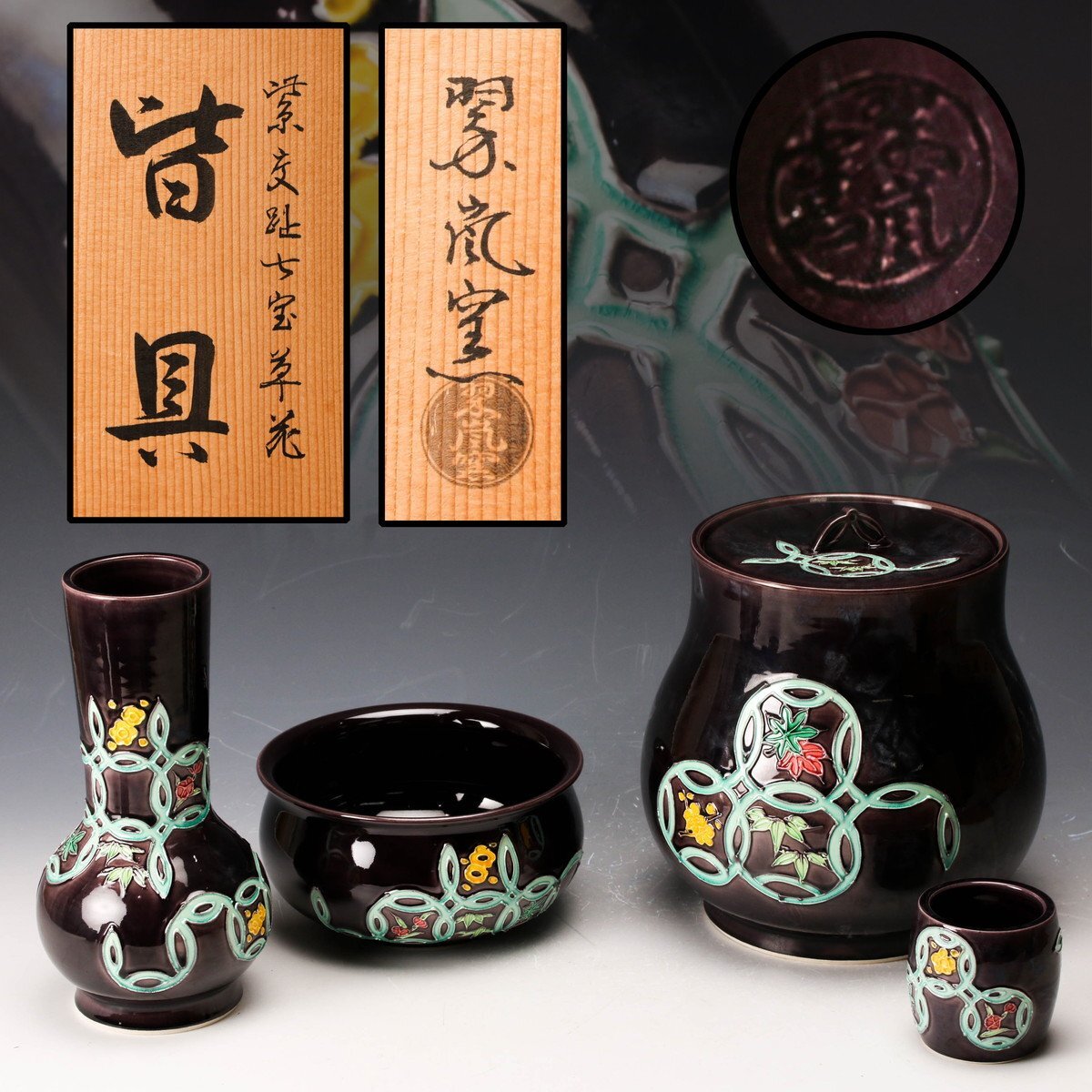 【佳香】中村翠嵐 紫交趾七宝草花皆具 共箱 栞 茶道具 本物保証