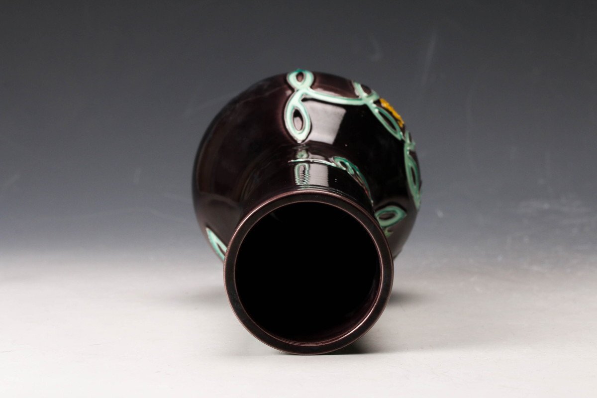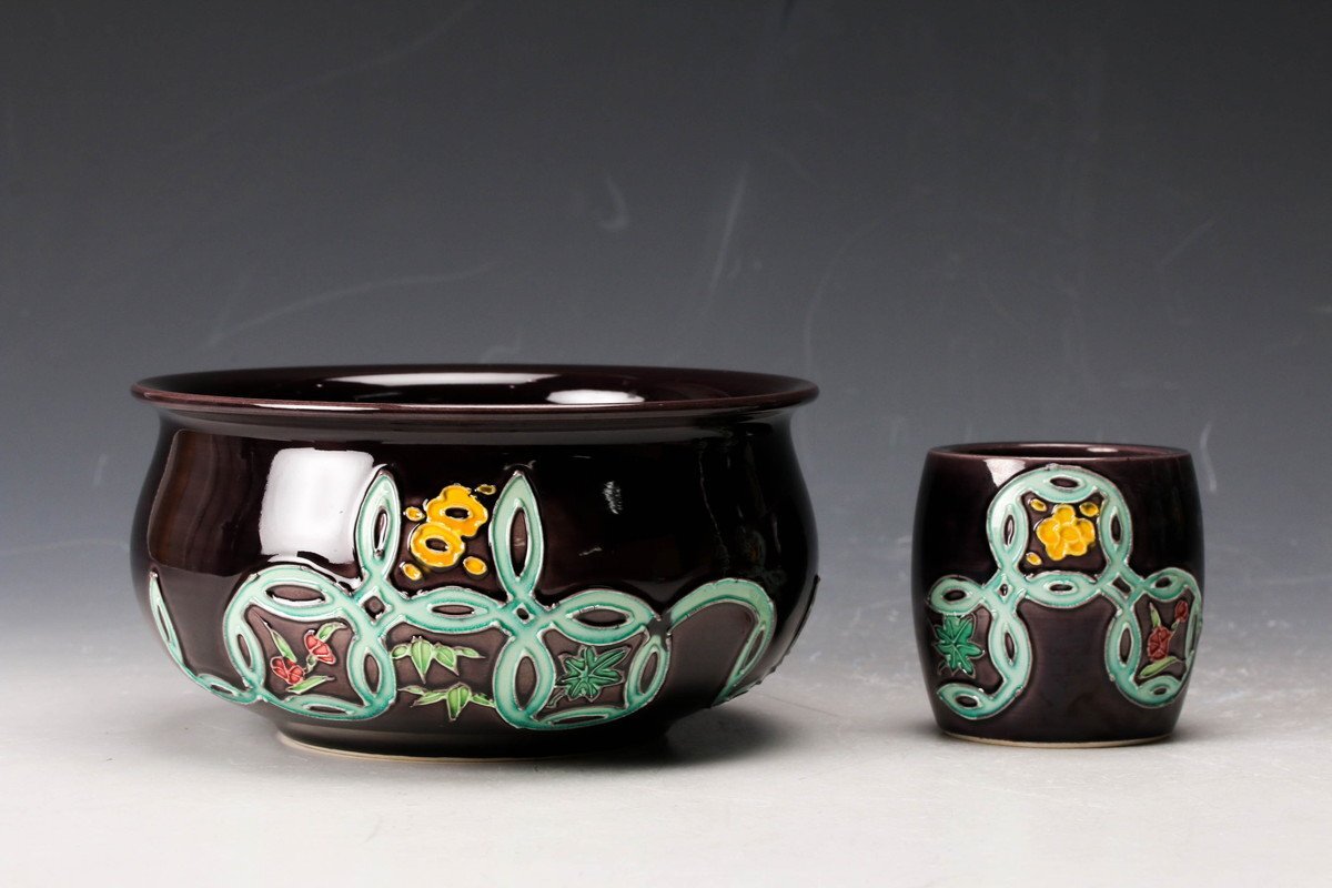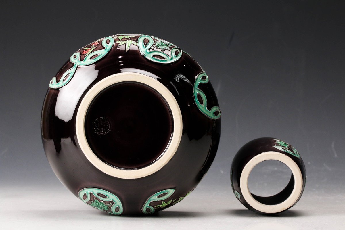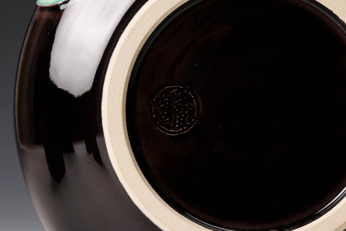 【佳香】中村翠嵐 紫交趾七宝草花皆具 共箱 栞 茶道具 本物保証
