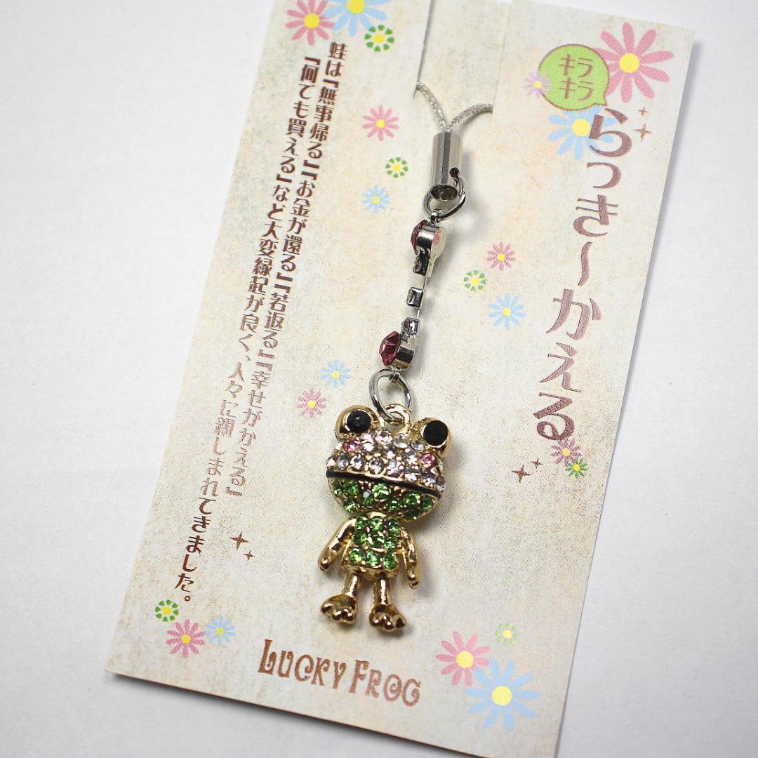【カエル】ラインストーンストラップ カエルお守り 無事かえる 蛙 キーホルダー