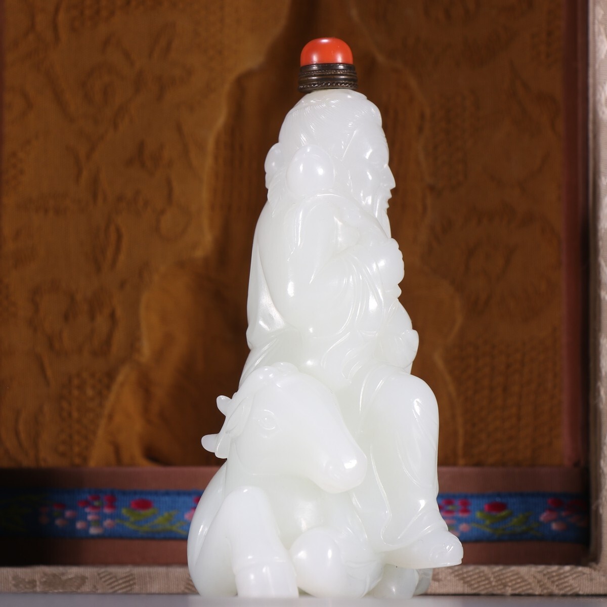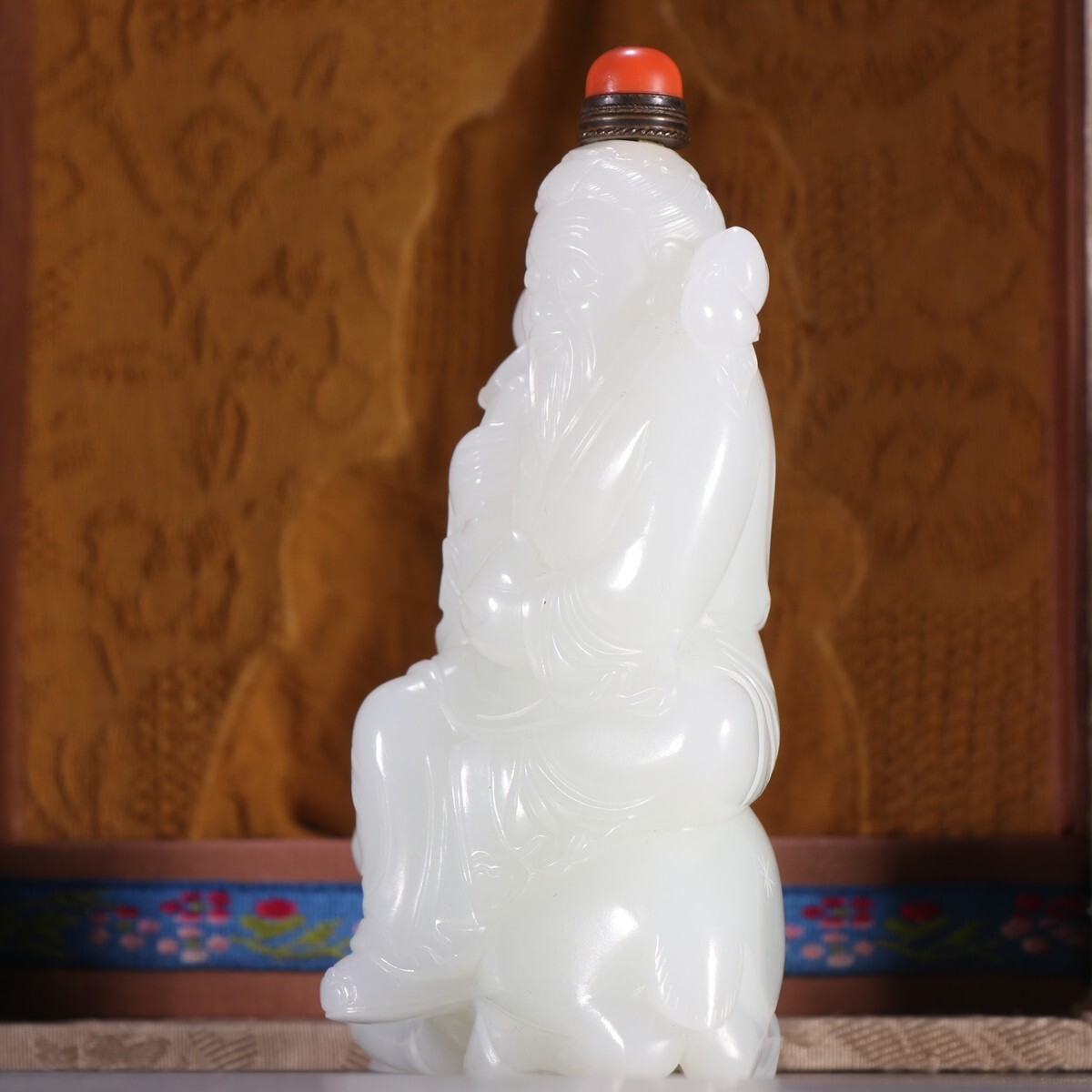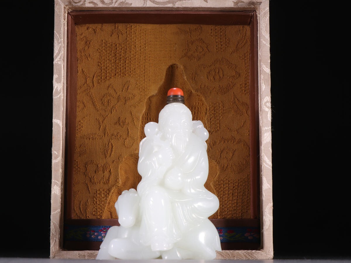 【瓏】和田玉 羊脂白玉彫 壽仙翁 鼻煙壺 清時代 極細工 手彫り 置物擺件 中国古賞物 古美術 蔵出