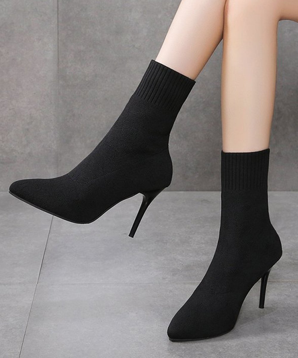 レディース ニットブーツ ポインテッドトゥ 9cmピンヒール シューズ 無地シンプル セクシー オフィス きれいめ 靴