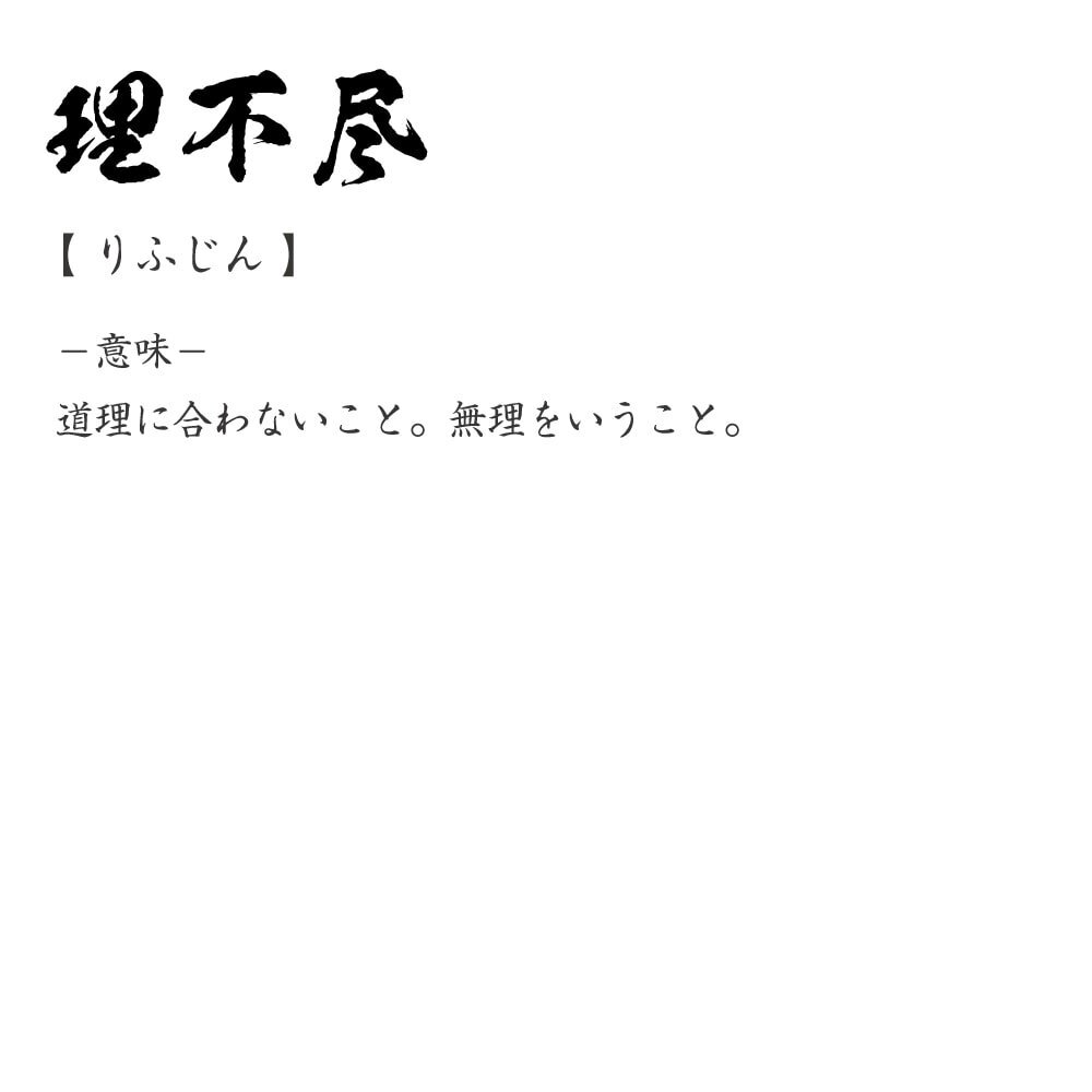 理不尽 (りふじん) 書道家が書く プリント Tシャツ S M L XL XXL 120 130 140 390 G-S G-M G-L 【 三字熟語 】