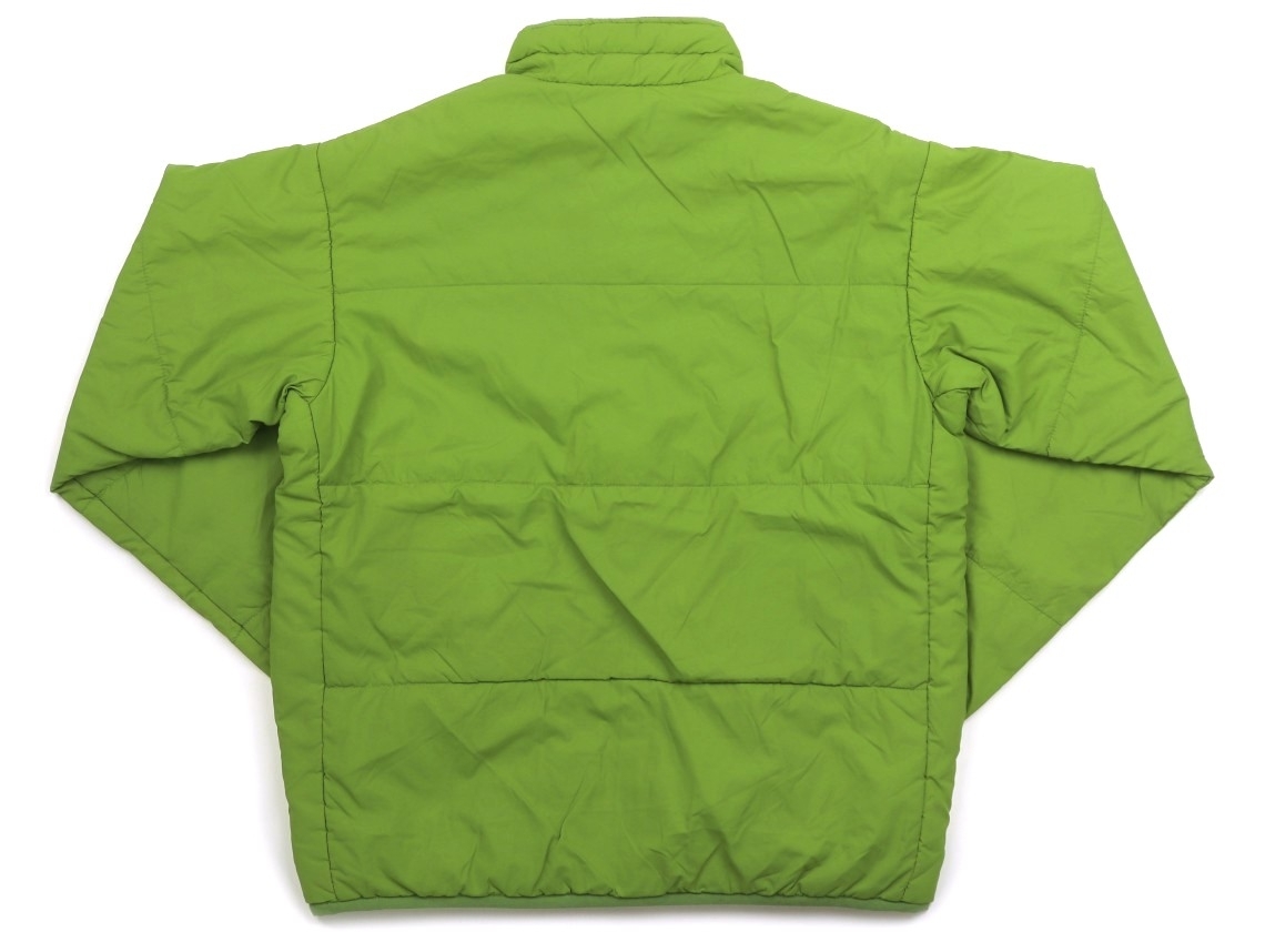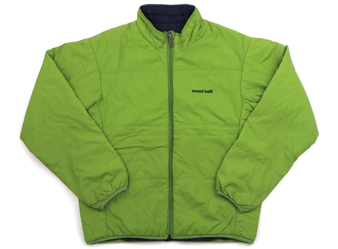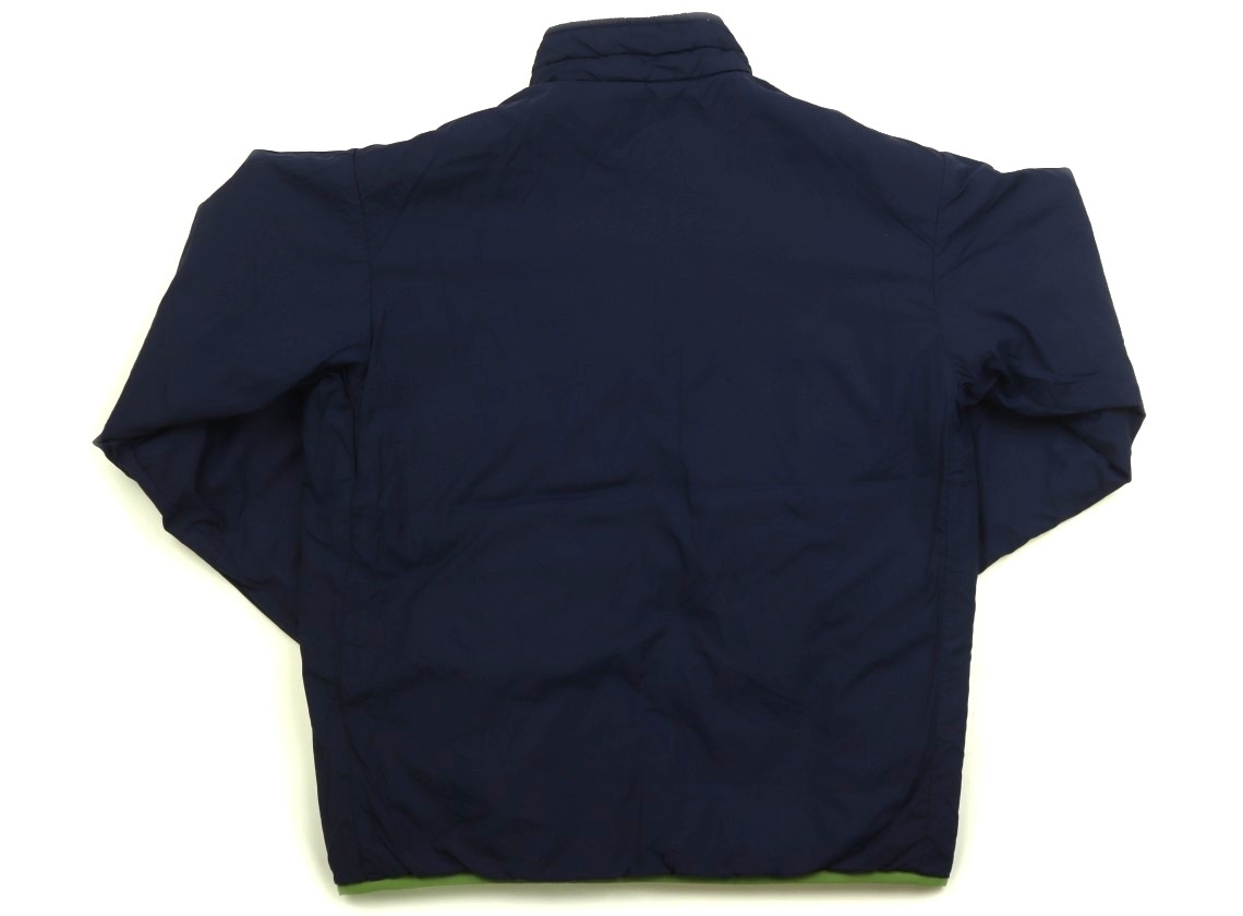 リバーシブルで着られます。ナイロン素材で、中綿はポリエステルです。ネイビー側の袖に複数の薄汚れあり。グリーン側全体に汚れが目立ちます。普段使いにいかがでしょうか。