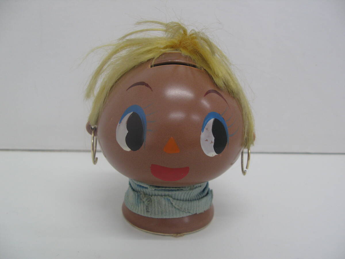 | 【丸-2184】レトロ/褐色女の子貯金箱/陶器(TK) |