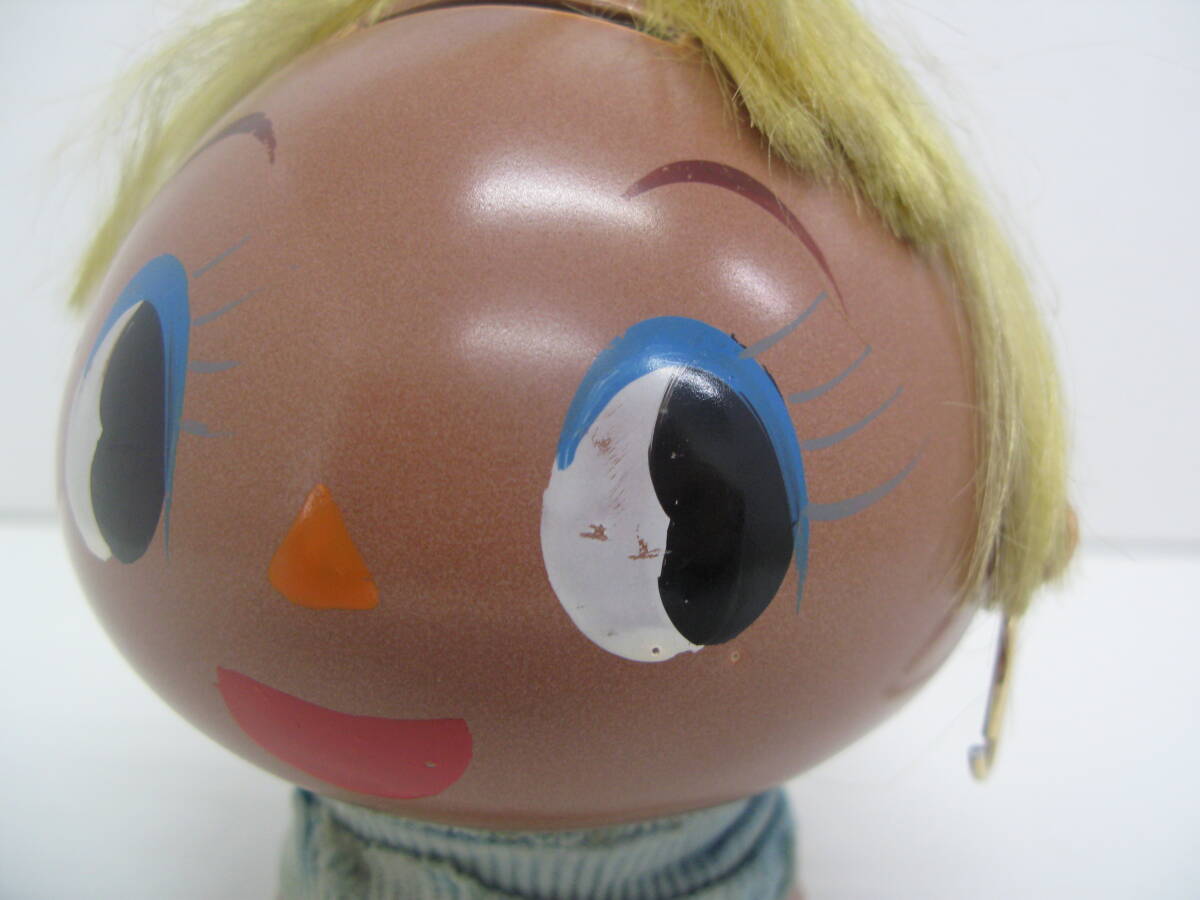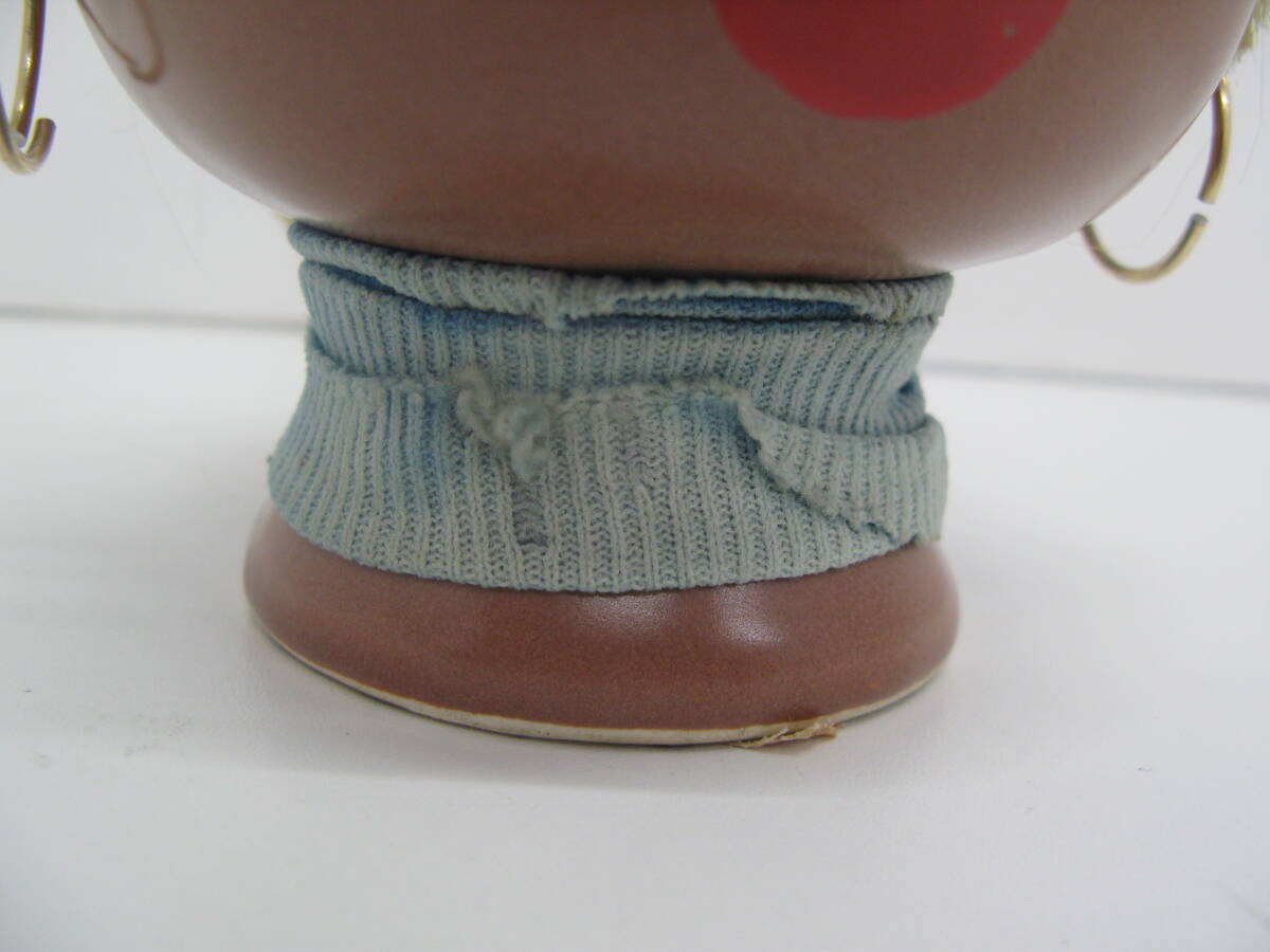 陶器製です。 高さ約13cm位です。 おでこのところに、お金をいれる穴があります。 古いもので、布の部分に色褪せ、ほころび、汚れがあります。また、目の白い部分に塗装はげがあります。 髪の毛に、長期保管による、汚れがあります。 底の部分のフタが取れているため、布テープで留めている状態です。その周辺にも汚れがあります。 画像で商品の状態をご確認いただき、中古品としてご理解いただける方のみ、ご入札お願いいたします。 当社の商品につきましては中古品(または中古扱い)のため 下記の注意事項を合わせてご確認ください。 ※委託品・長期保管品のため、新品・未開封品であっても微細なキズや汚れがある場合がございます。 ※商品説明に明記しておりますが、使用感がある場合がございます。 ※家電は動作確認済みですが全て機能の長時間動作確認はしておりません。 ※現状でのお渡しのため、商品の状態などの理由による返品、ご返金には応じかねますのでご了承ください。 ※商品が小さな部品、電池等を含む場合は誤飲防止のため、小さなお子様の手の届かないところでのご使用及び保管をお願いいたします。 気になることがありましたらお気軽にご質問ください。 | ||||||||