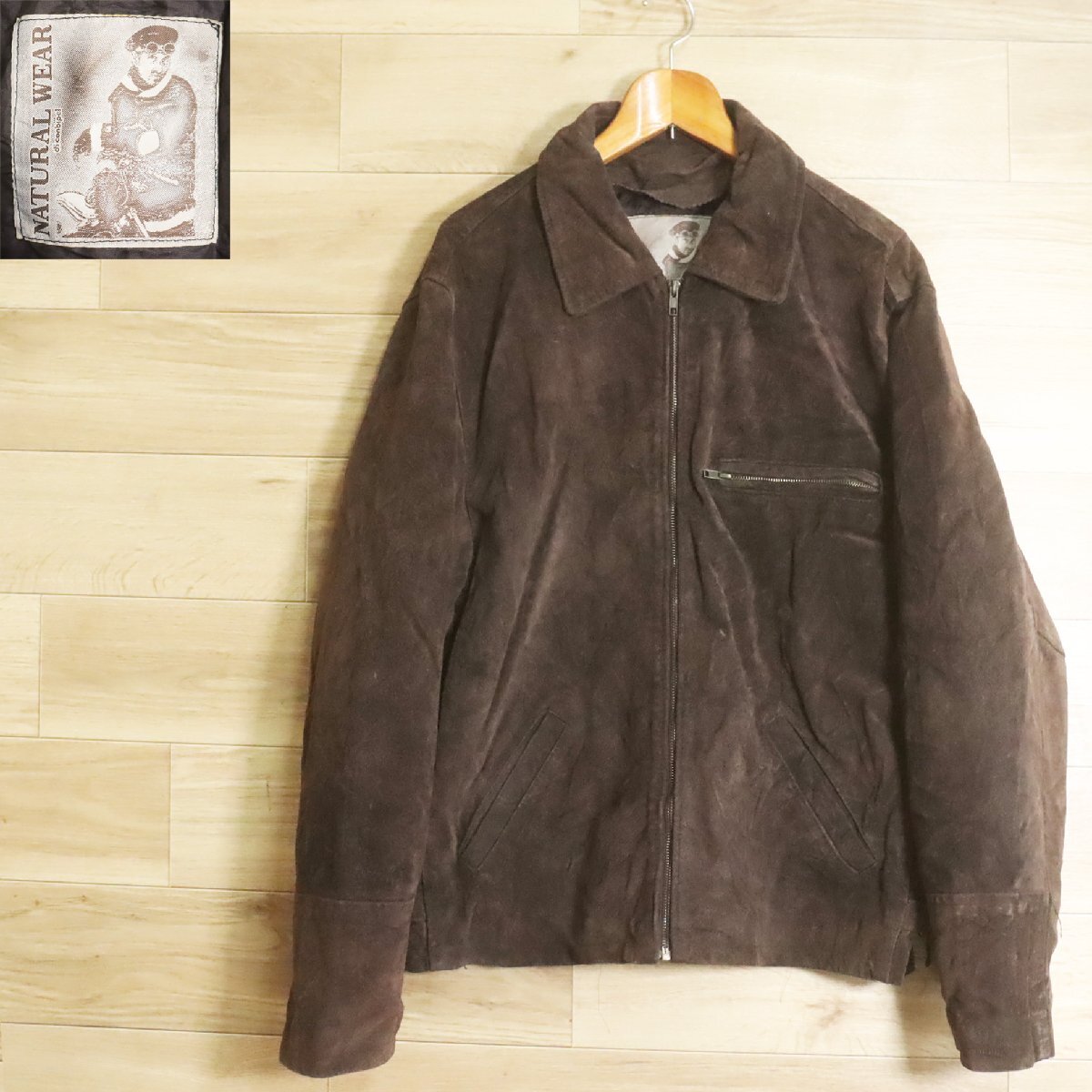 *3R/R7.4-8 イタリア製 NATURAL WEAR di conbipel スエード レザージャケット 本革 ライダースジャケット 54 ユーロ古着
