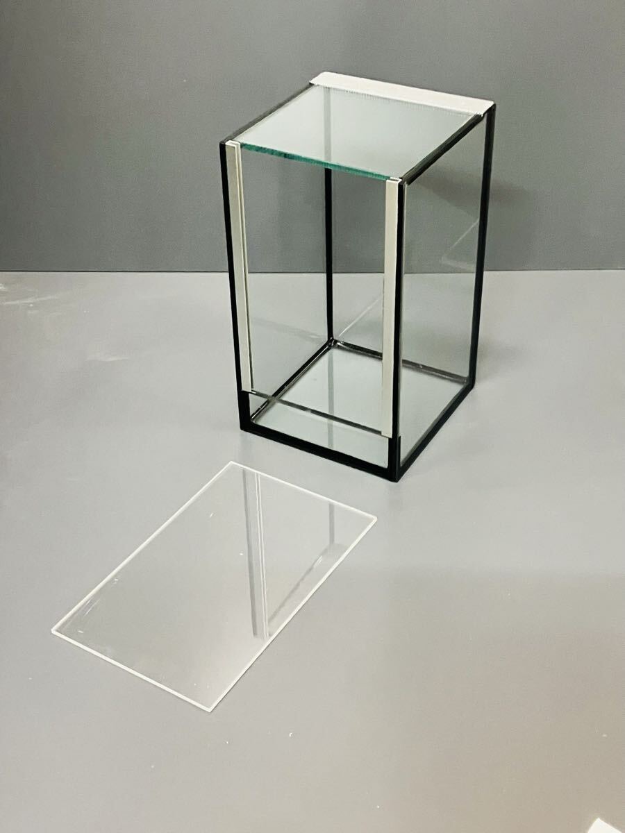 【Size:サイズ】 ガラスケース:135x140x230mm (幅x奥行x高さ) 正面下部ガラス:約37㎜(高さ) 上面メッシュ部分幅/約25㎜ 前面アクリル 上下スライド開閉式 【Material:素材】 ガラス・アルミ・アクリル 【Collar:色】 コーキング部分 ブラック 商品説明: 小型パルダリム、苔リウム用ガラスケースになります。 植物だけでなく両生類、昆虫飼育も可能です。 シンプルですが機能、通気性、見た目にこだわったケースです。 正面扉は上下スライド式で、素材はアクリル軽いため扱いやすいです。 また透明度が高く、中の植物や生体も見やすいです。 ブラックシリコン仕様のおしゃれなケースです。 【ハンドメイド・ワンオフについて】 素材に天然木、鋼材、特殊素材を使用しておりますので材料の性質上、節・小傷、色むら、色あせ、錆が入る場合がございます。 また商品によって特殊な加工、形状にする際に小傷が付く場合がございます。 エイジング加工(さび加工)やハケ塗りハケ跡を残す場合がございますが 上記記載内容全て使用上に問題の無い商品の特徴、仕様としてご理解下さいませ。 |