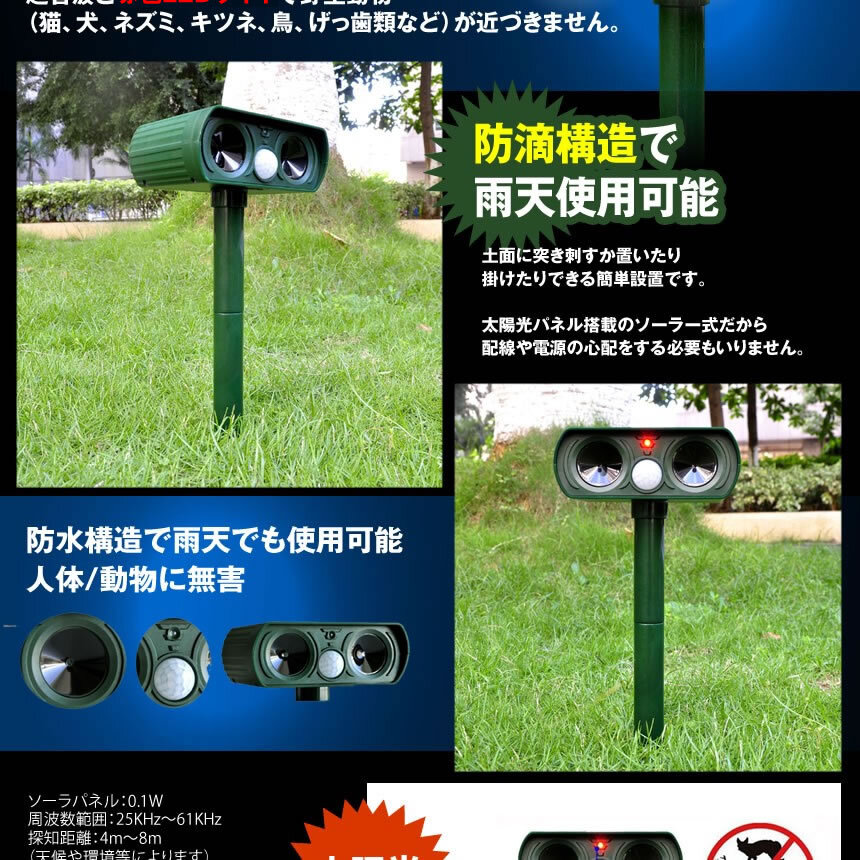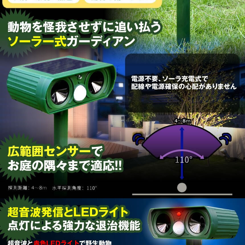 超音波発信とLEDライト点灯による強力な退治機能