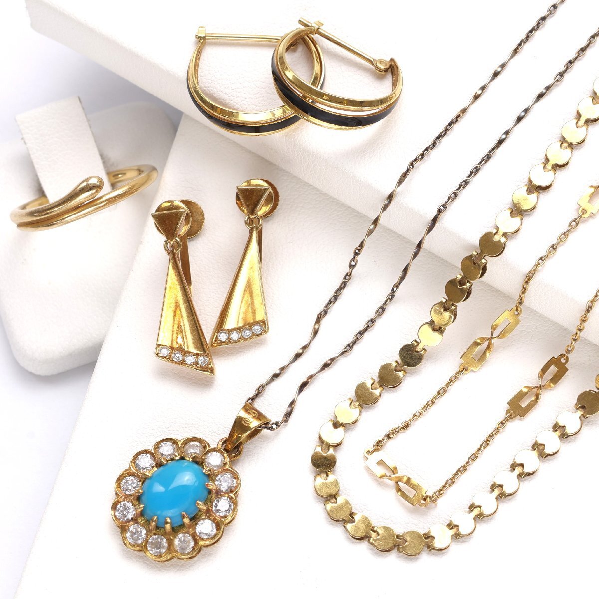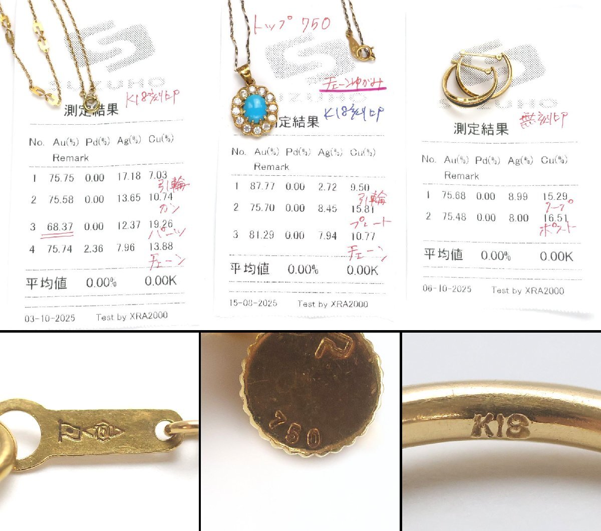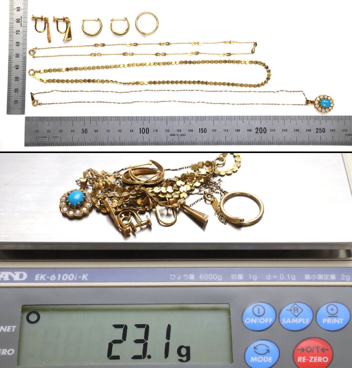 おたからや◆K18相当ジュエリー 6点《約23.1g》デザインチェーンネックレス,メレダイヤイヤリング等 ※X線結果ご参照下さい【B-YA02516】