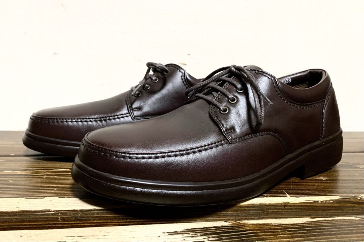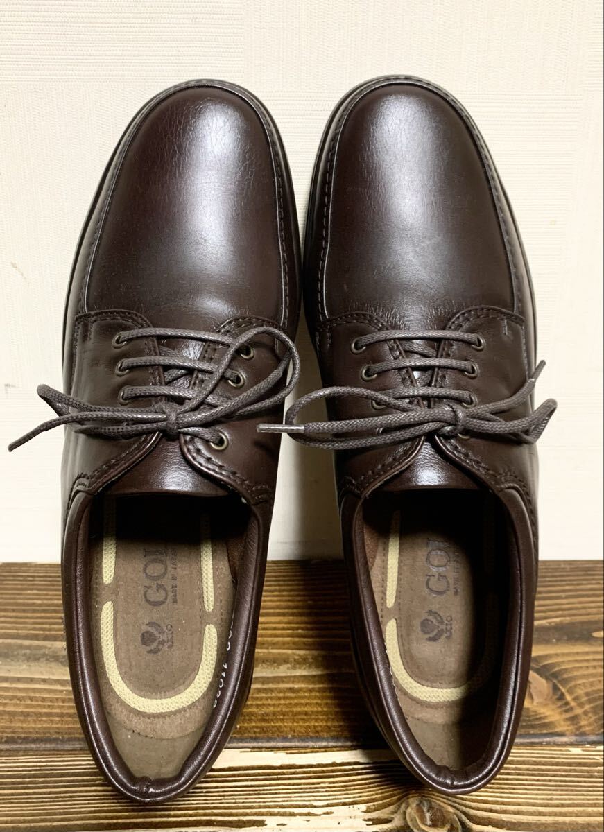 未使用:AKIO GOLF.軽量 レザー ウォーキング シューズ 26(焦茶/上質.牛革/アフターゴルフ/コンフォートシューズ/日本製/madras regal type)