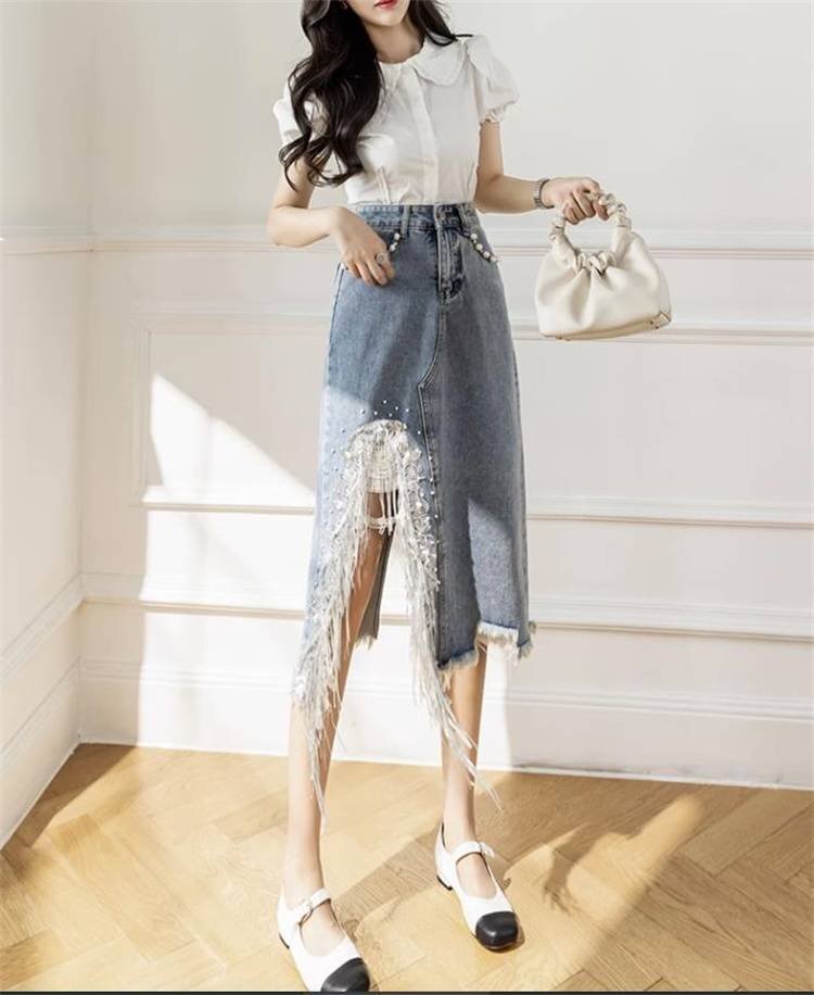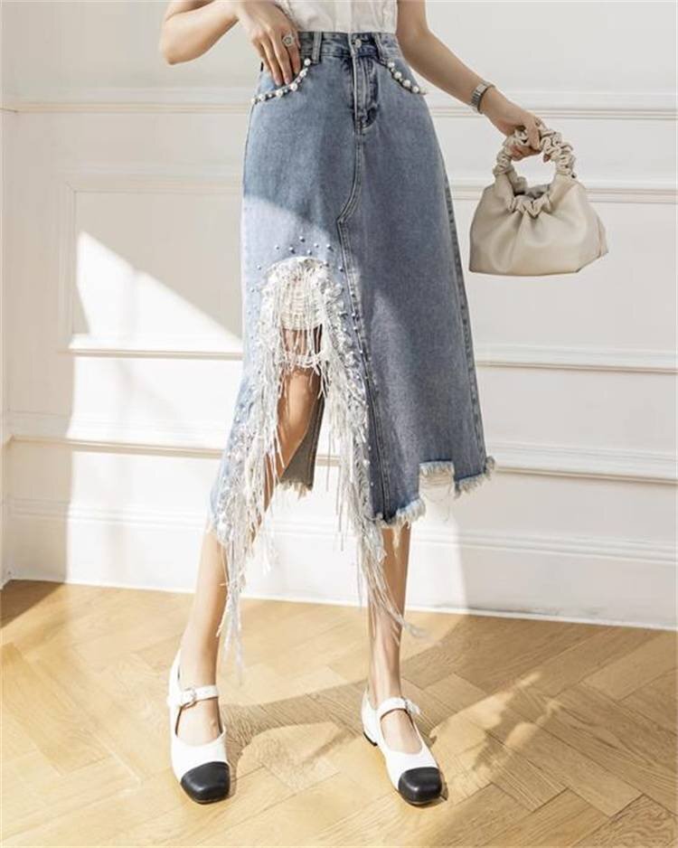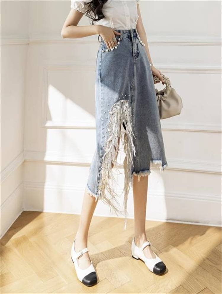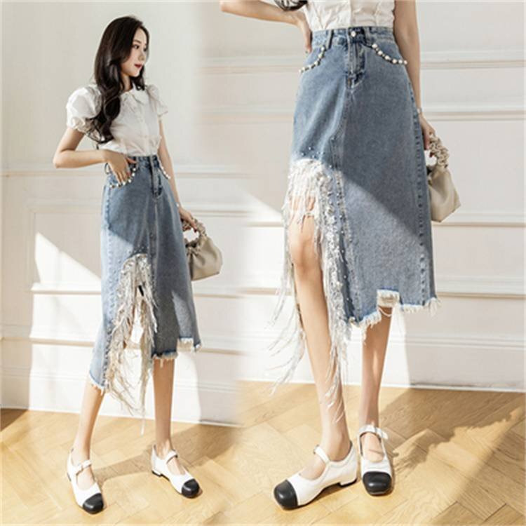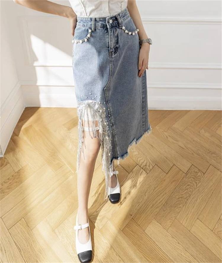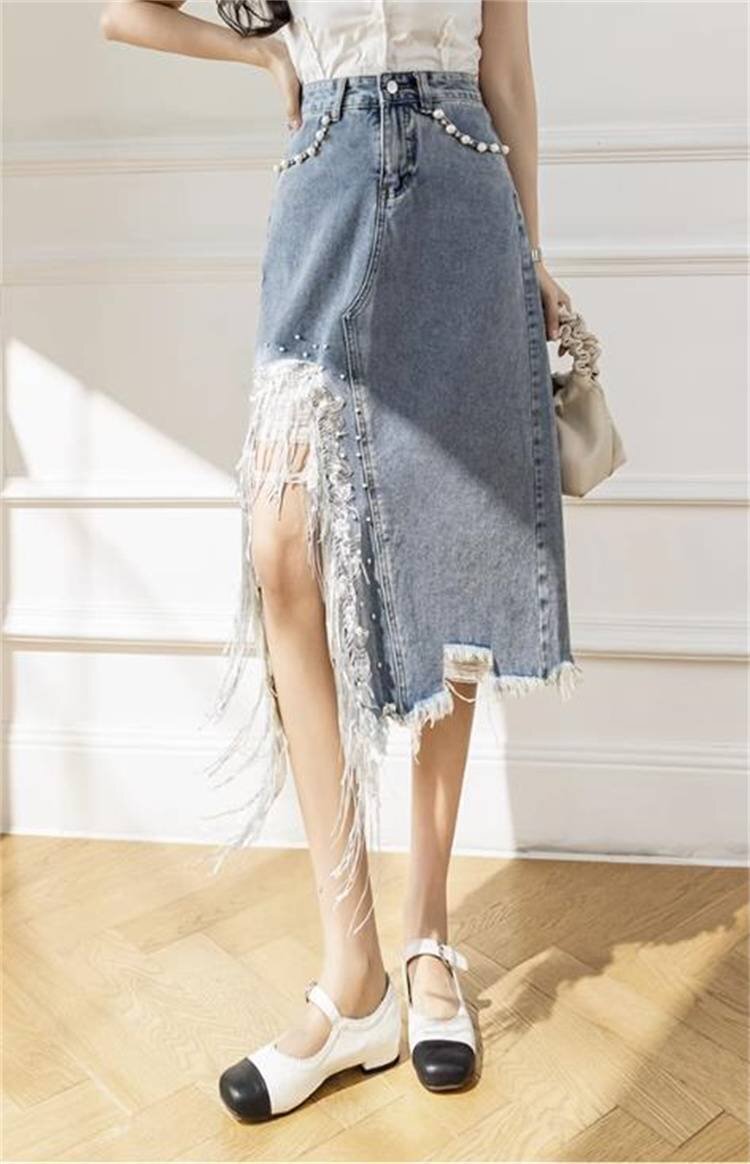 デニムスカート タイトスカート ひざ丈スカート きれいめ カジュアル かわいい スプリット入り 大きいサイズあり 2XL ブルー