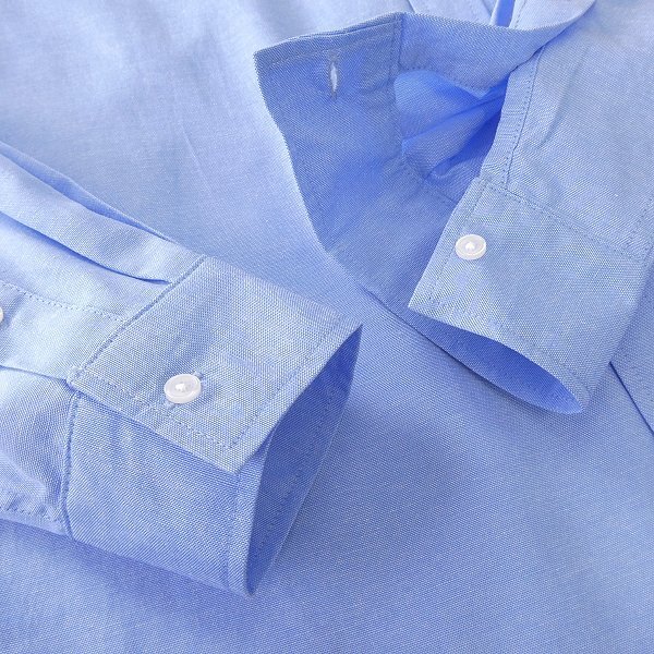 コットンとポリエステルをブレンドしたオックスフォード生地を使用したボタンダウンシャツです。 コットンの自然な風合いとポリエステルの軽さや扱いやすさを兼ね備え、程よい厚みとハリがありながら快適な着心地を実現しています。 長袖仕様でシーズンを問わず活躍。ボタンダウンの襟はカジュアルさときちんと感を併せ持ち、ジーンズやチノパンとのリラックススタイルからジャケットインでのきれいめコーデまで幅広く対応できます。 日常使いに適した実用性と、ベーシックで洗練されたデザインを兼ね備えた一枚です。 |