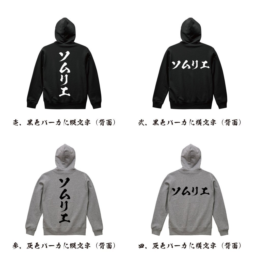 ソムリエ オリジナル パーカ 書道家が書く プリント フルジップ パーカー S M L XL XXL 110 130 150 【 職業 】