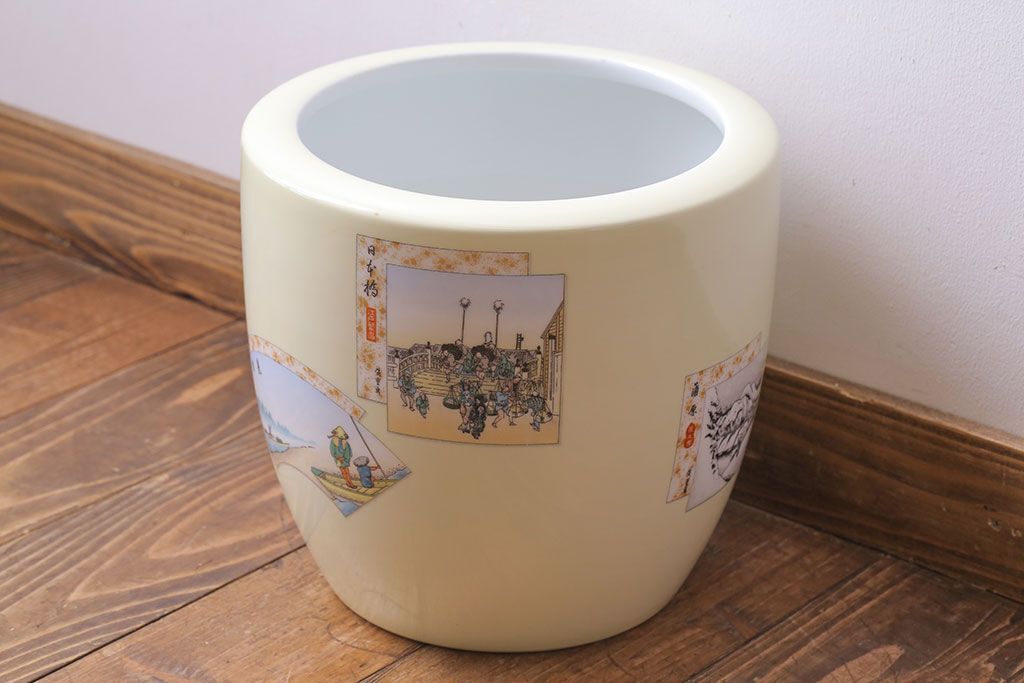 和製アンティーク オールドノリタケ 日陶(則武) 東海道五十三次 江戸の風景が楽しめる火鉢(瀬戸火鉢、Noritake、noritake、NORITAKE、鉢カバー、傘立て、ディスプレイ)(1)(R-028179)