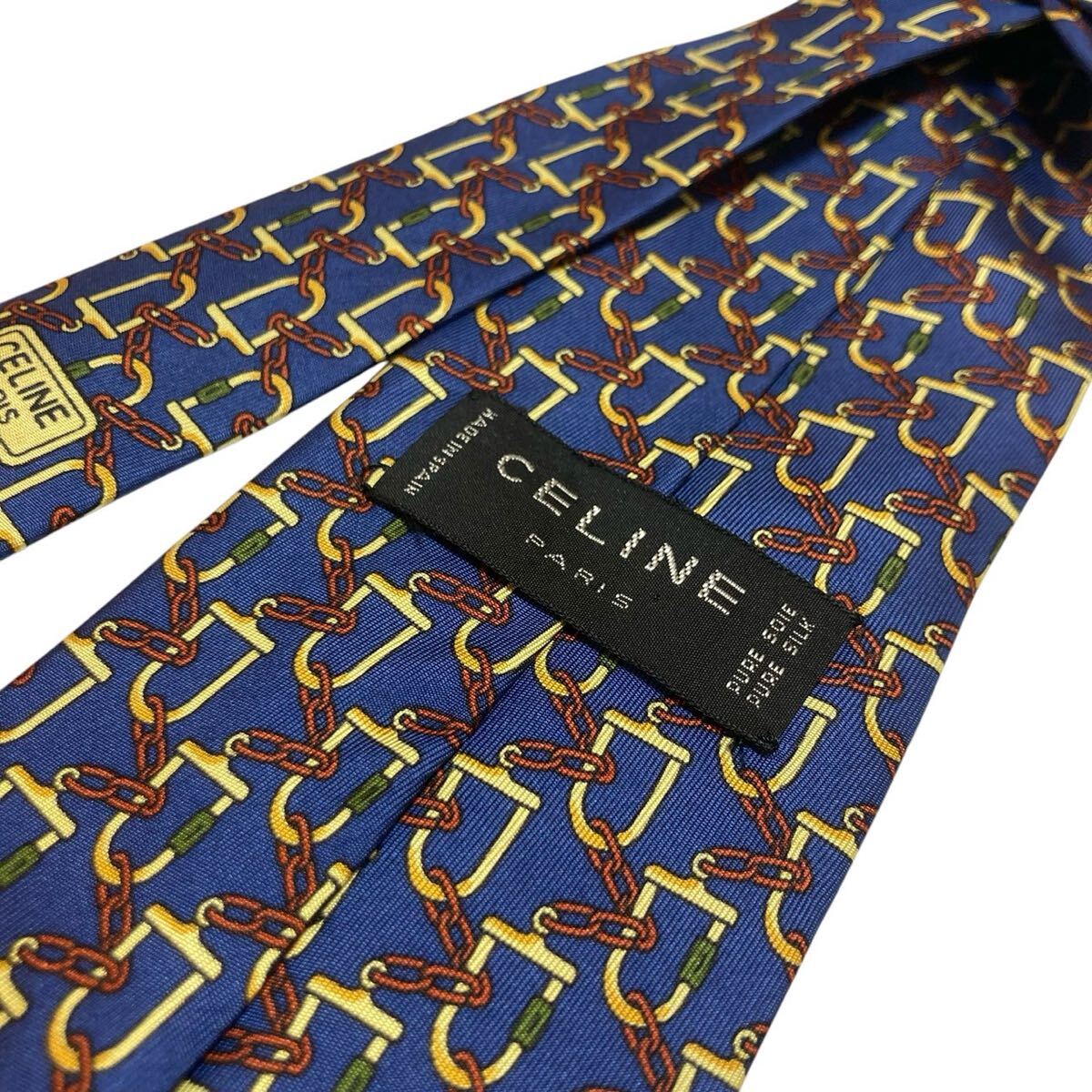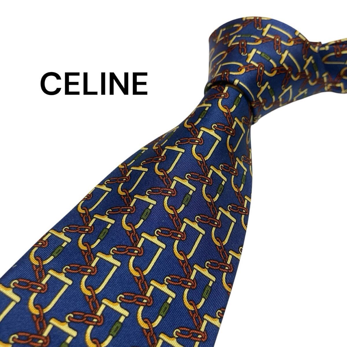 セリーヌのチェーン柄のシルク100%総柄ネクタイ