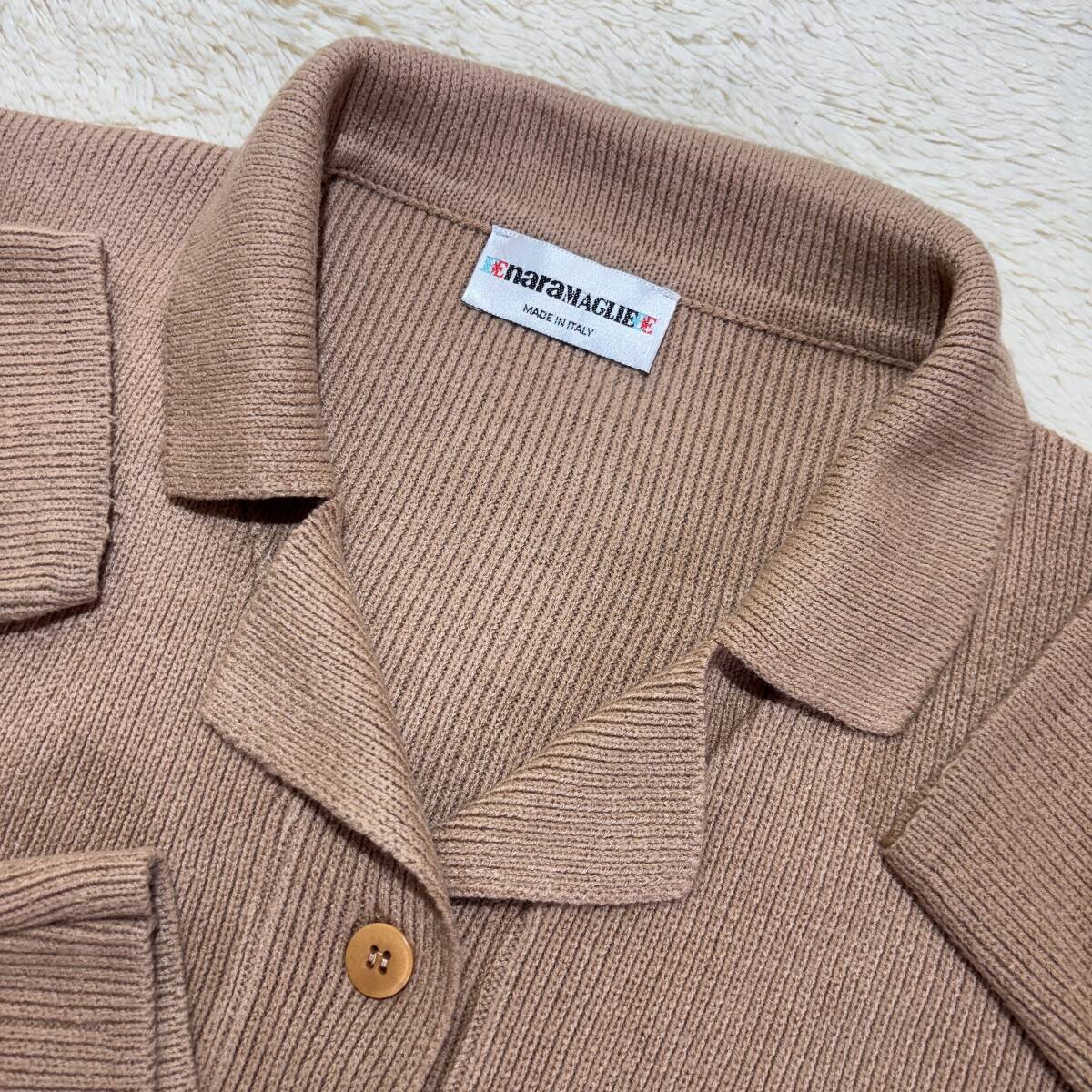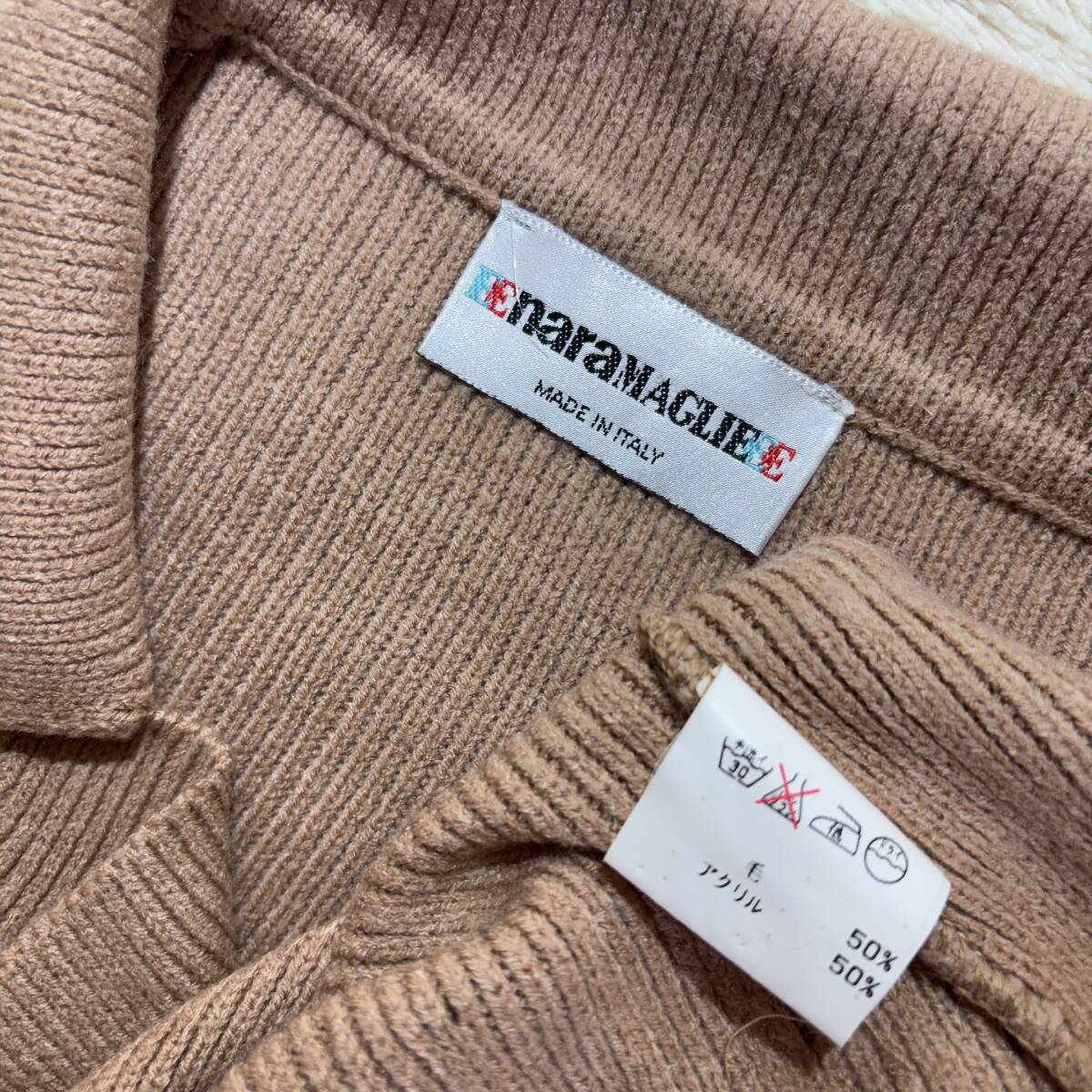 | C430■ナラマリエ/ナラカミーチェ★伊製★ベージュ/ワイド★襟付きカーディガン■M | ||||||||||||||||||||