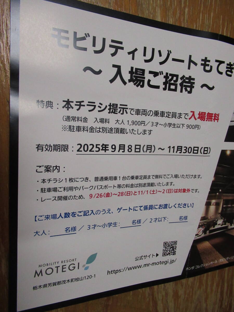 モビリティリゾートもてぎ(旧:ツインリンクもてぎ)入場ご招待券