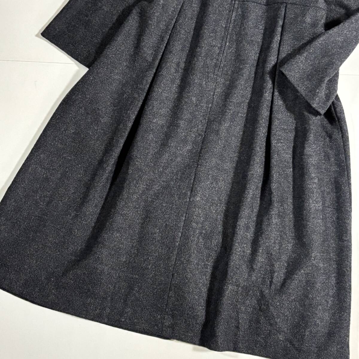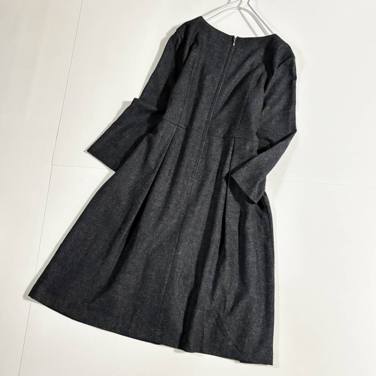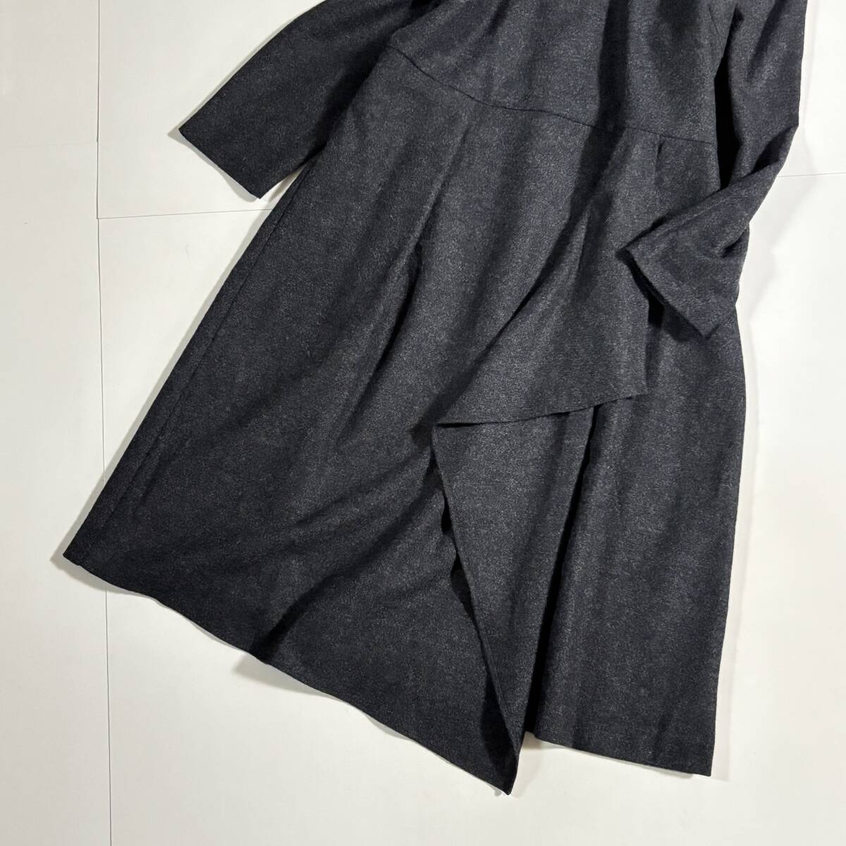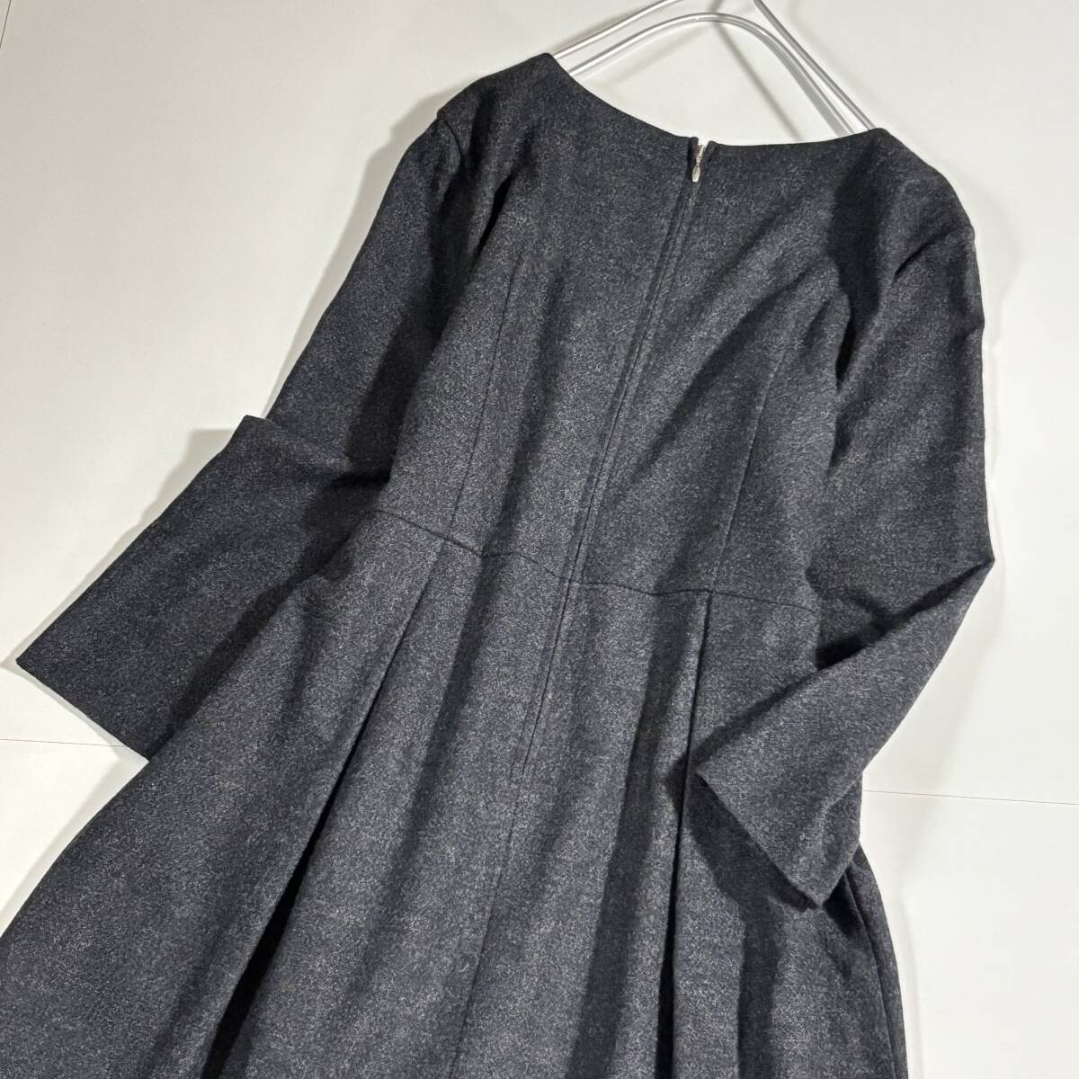 日本製 untitled アンタイトル 大きいサイズ42 // ウールミックス チャコールグレー系 フリル ワンピース ③