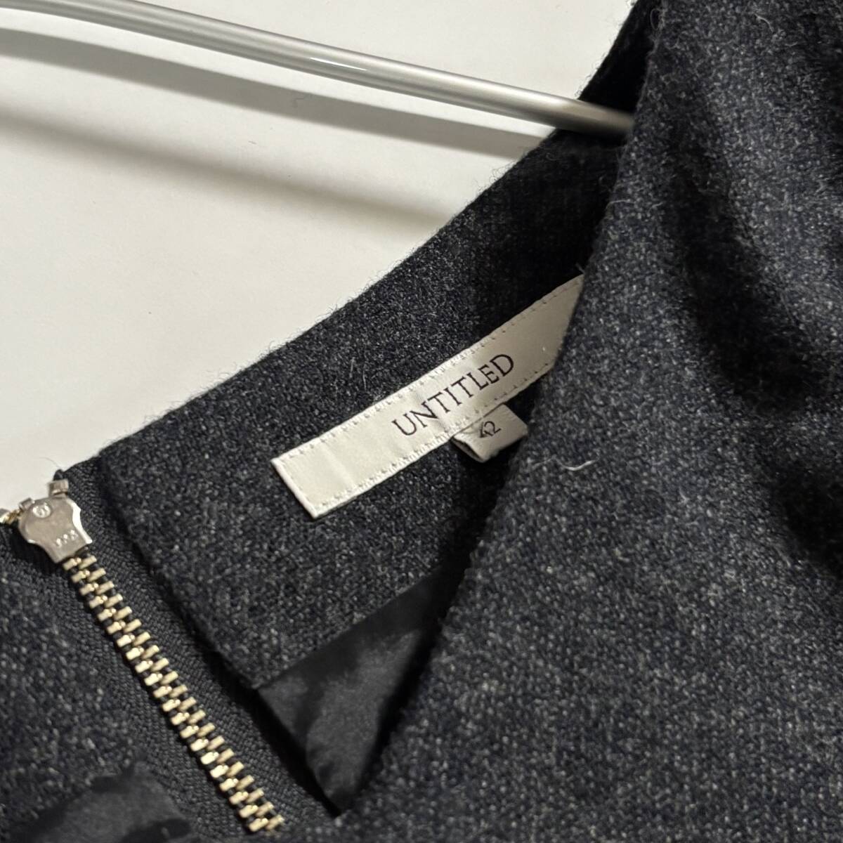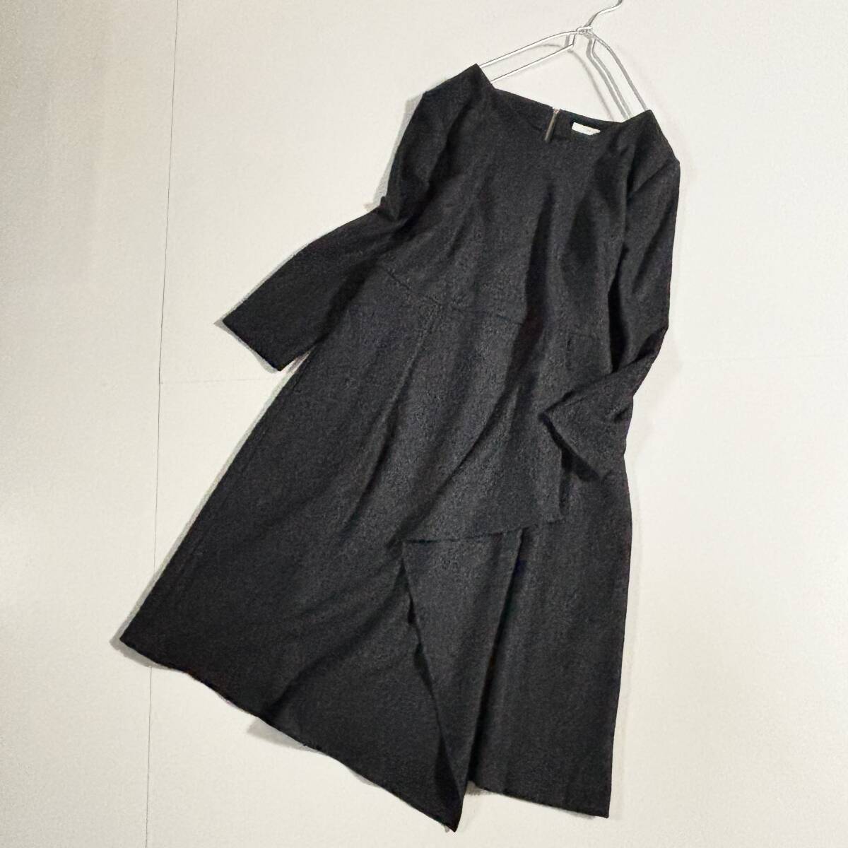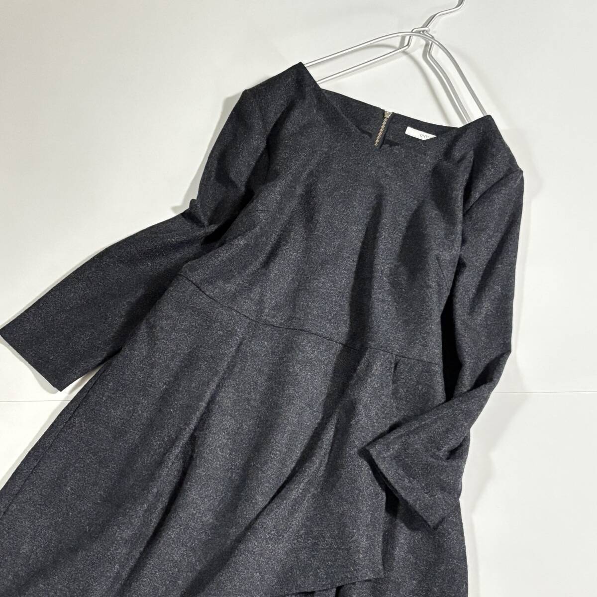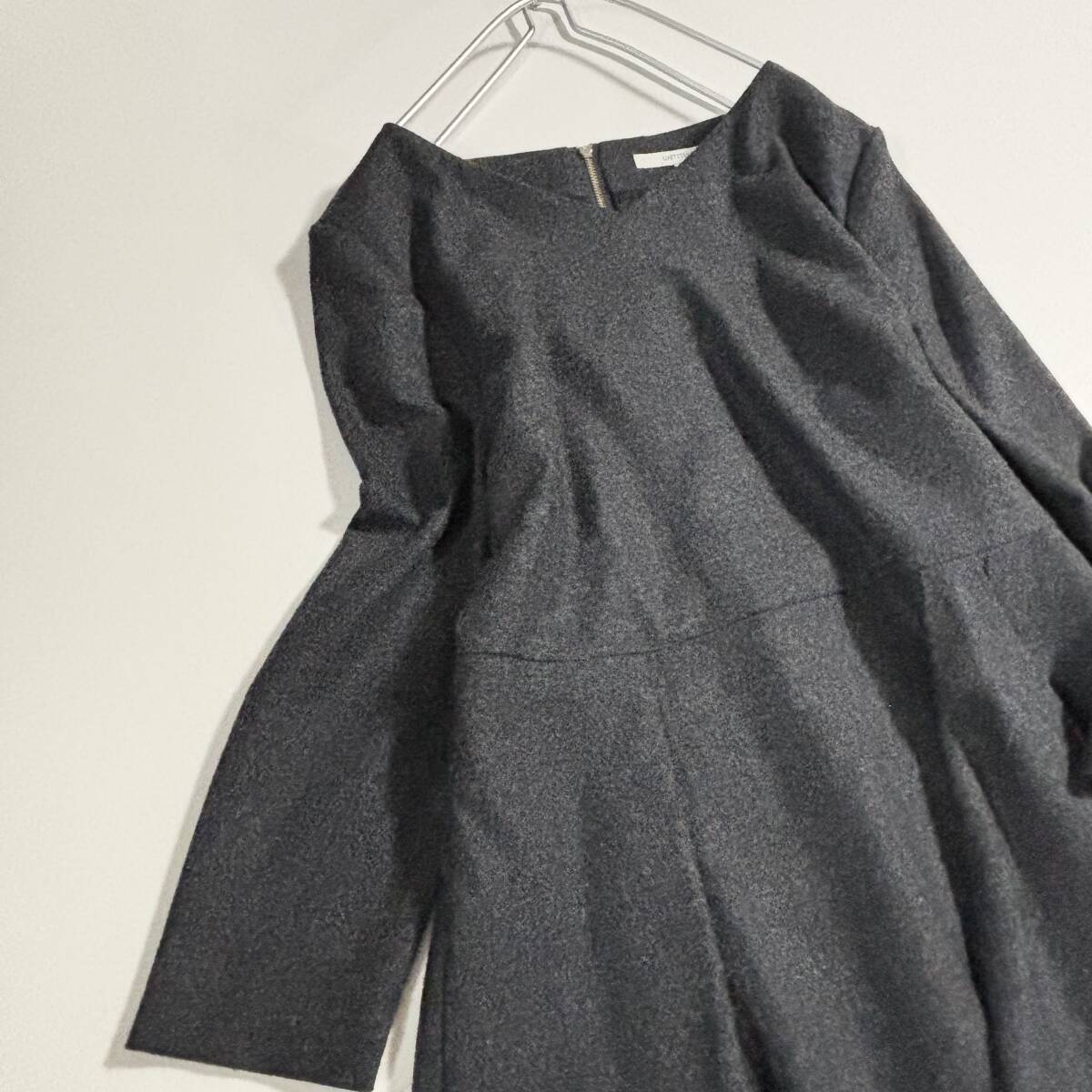 日本製 untitled アンタイトル 大きいサイズ42 // ウールミックス チャコールグレー系 フリル ワンピース ③