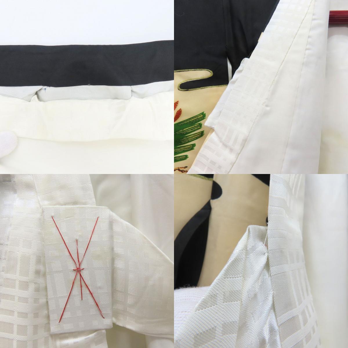 中古 子供着物 襦袢付き 正絹 化学繊維 金糸 ブラック ゴールド系 男の子 祝い着 お宮参り 和装 呉服 和服 きもの