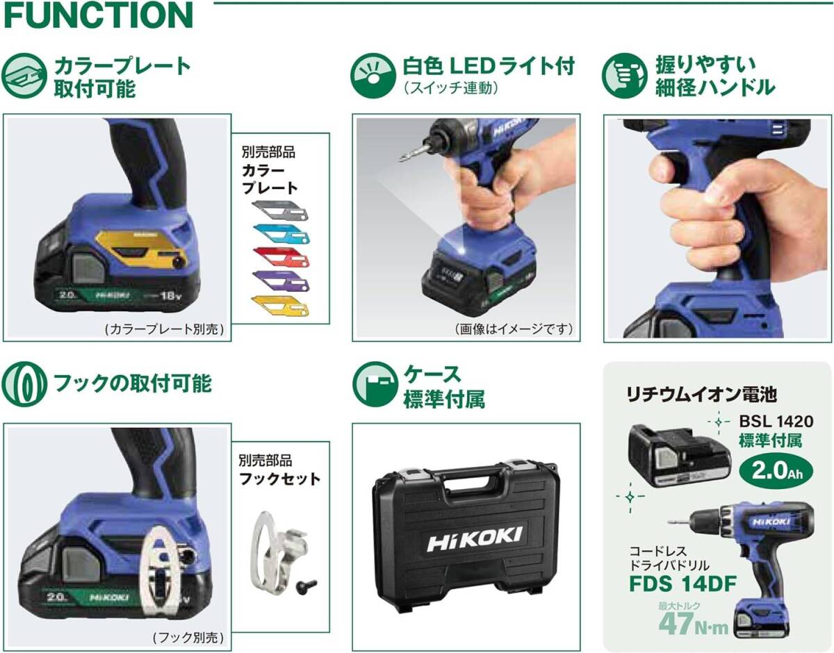 新品 HiKOKI(ハイコーキ) 14.4V コードレスドライバドリル 充電式 バッテリー2個・充電器・ケース付 FDS14DF(2BG)