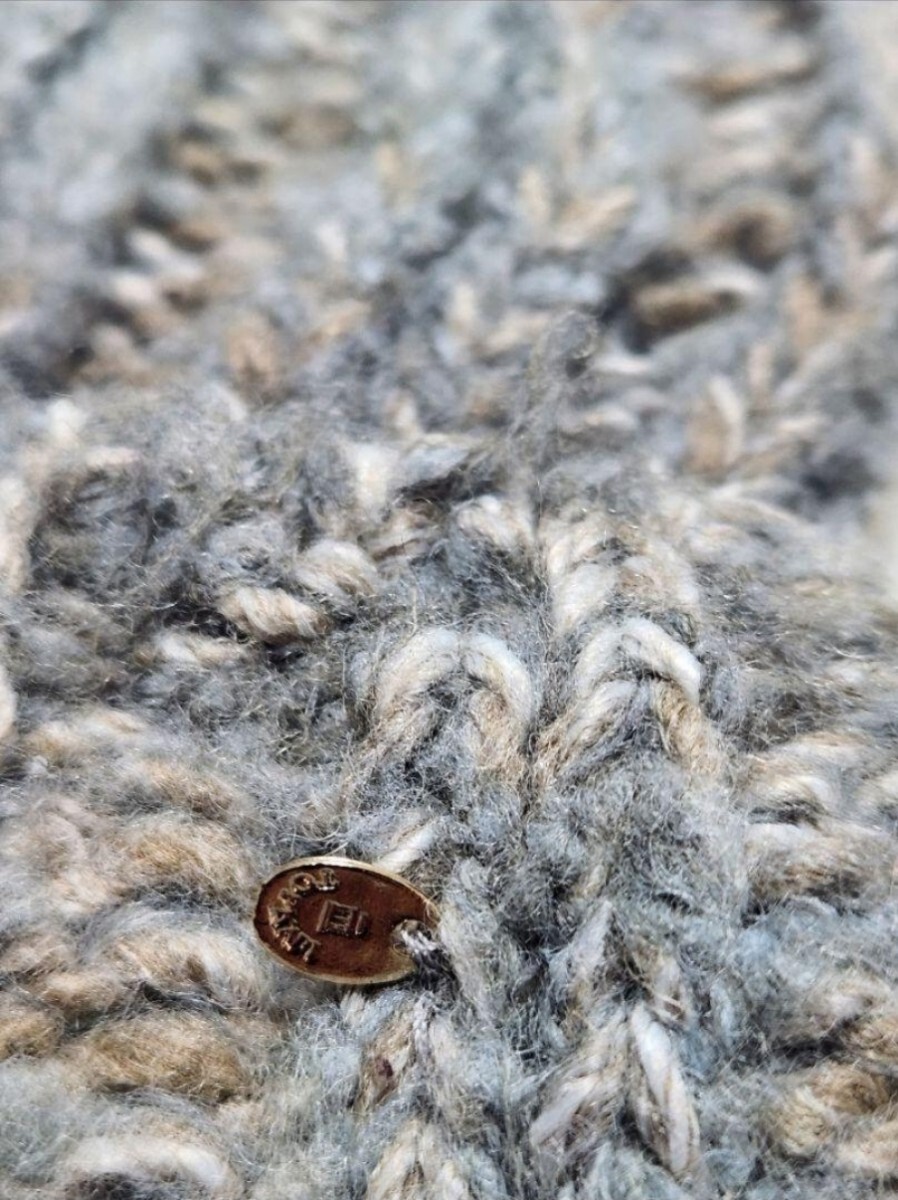 落ち着いたグレーの杢調デザインで、どんなコーディネートにも合わせやすい万能アイテム。