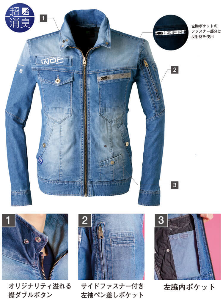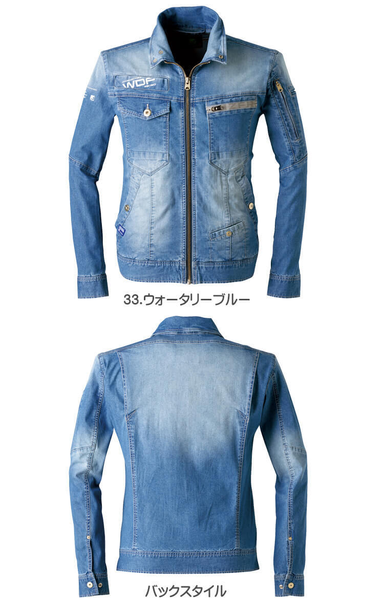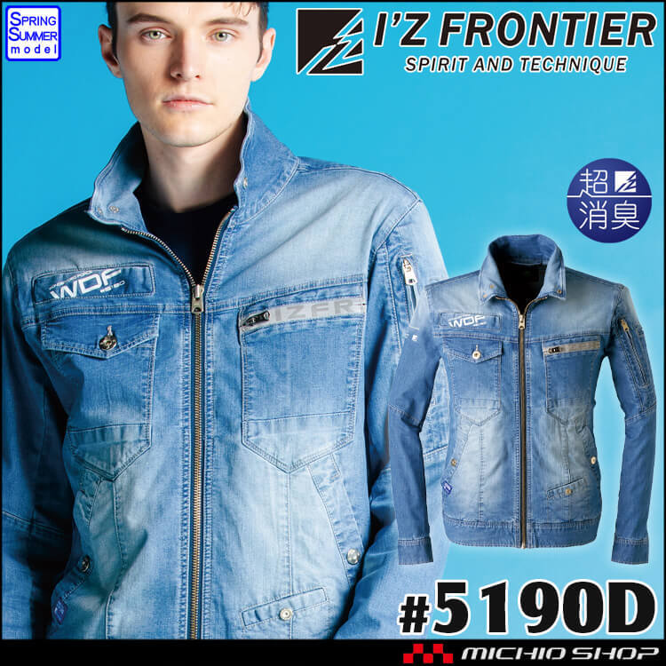 [在庫処分]作業服 春夏 アイズフロンティア 超消臭ストレッチデニム3Dワークジャケット 5190D 4Lサイズ 33ウォータリーブルー