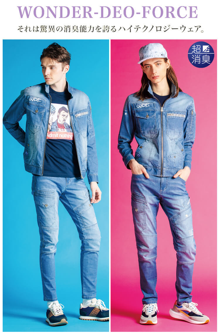 ・素材 :超消臭ライトオンスストレッチデニム(消臭糸クリーンマックスプロ使用)
