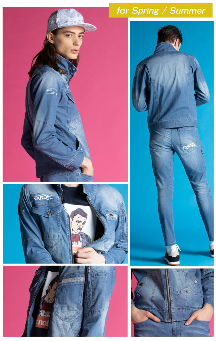・ミリタリーとライダースを融合させたカジュアル感溢れるデザイン性、メカニカルなデザインにポップなテイストをプラス、すべての世代に対応可能な新感覚ワークウェアに仕上げました。