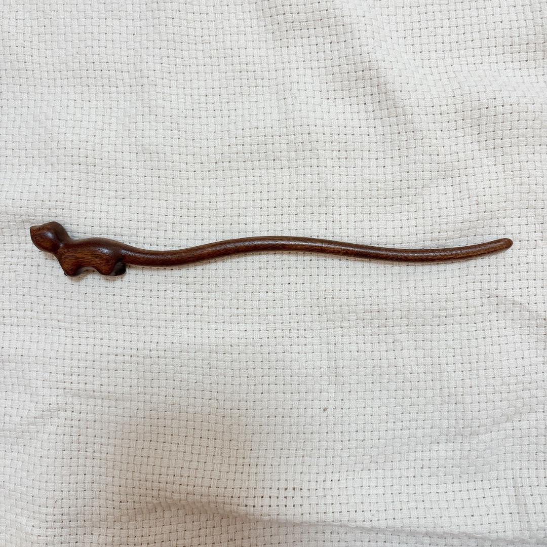 かんざし ねこ ネコ 猫 ブラウン 木製 白檀 和服 着物 かわいい