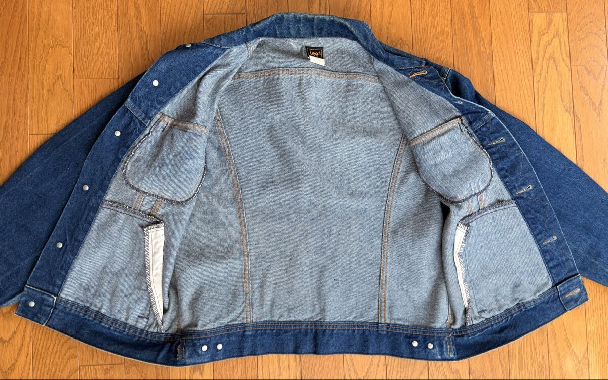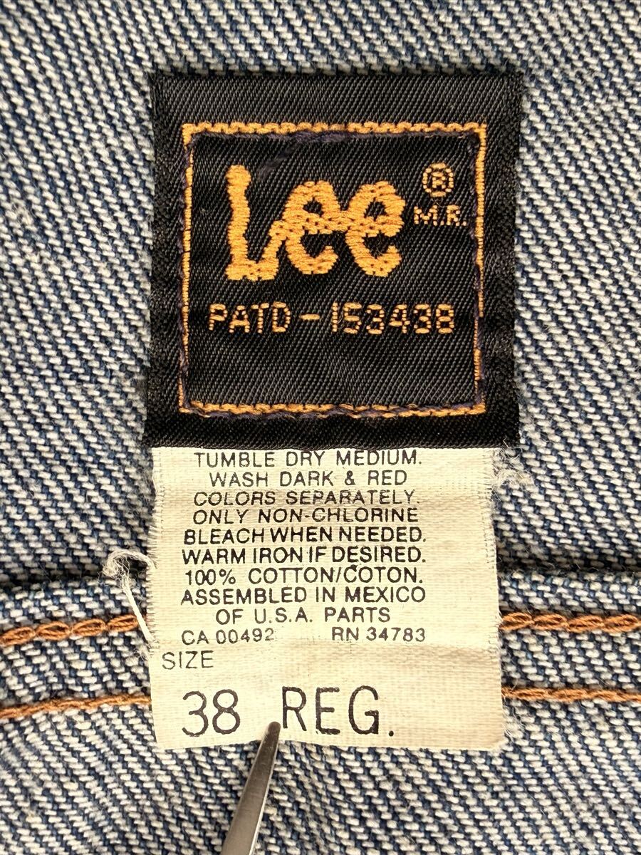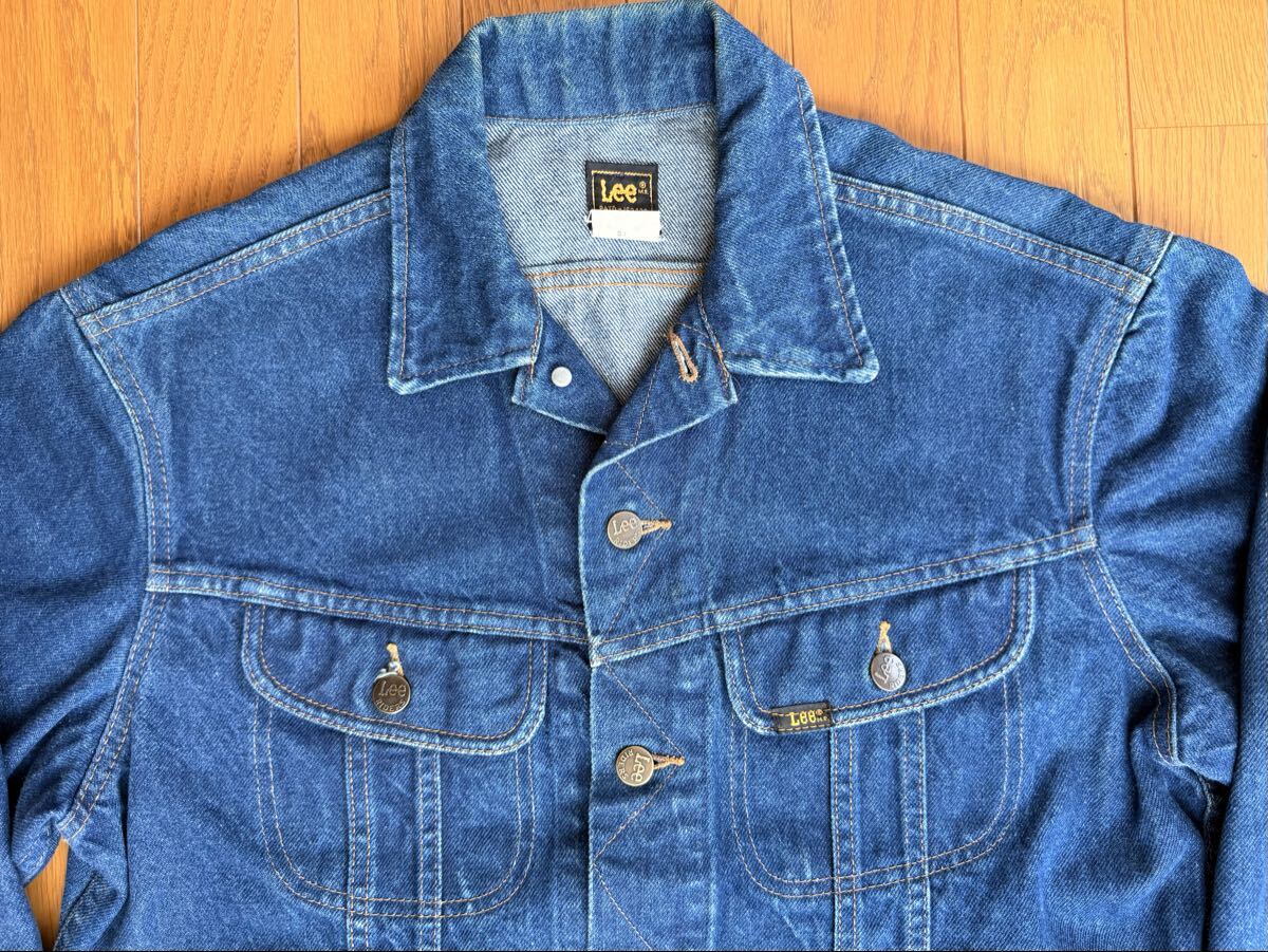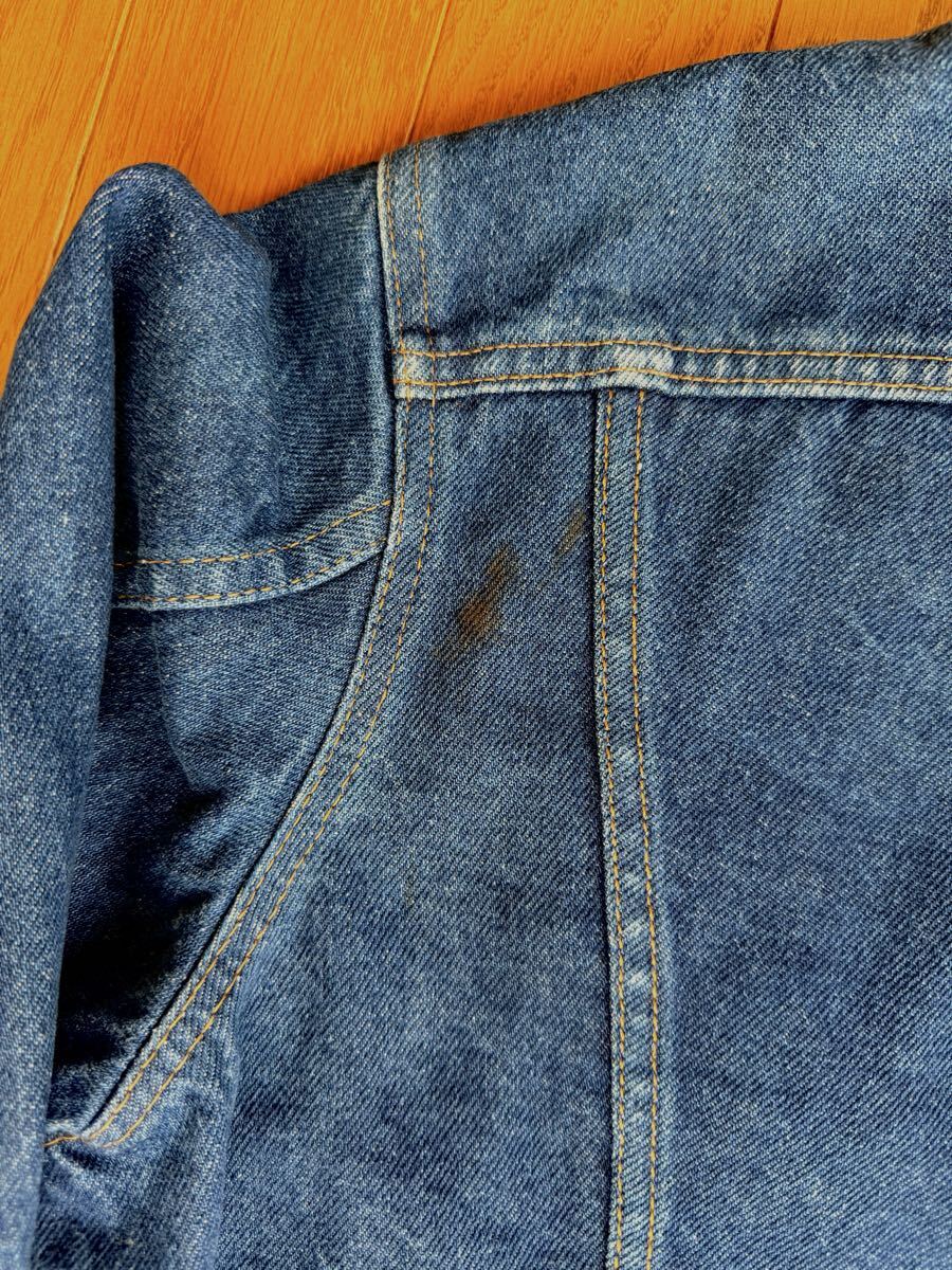 LEEのデニムジャケットです。アメリカ製パーツのメキシコ製造です。わりと傷みや擦れも少なく綺麗な個体ですが左肩に汚れあります。それ以外にも見落としている汚れがある可能性あります。