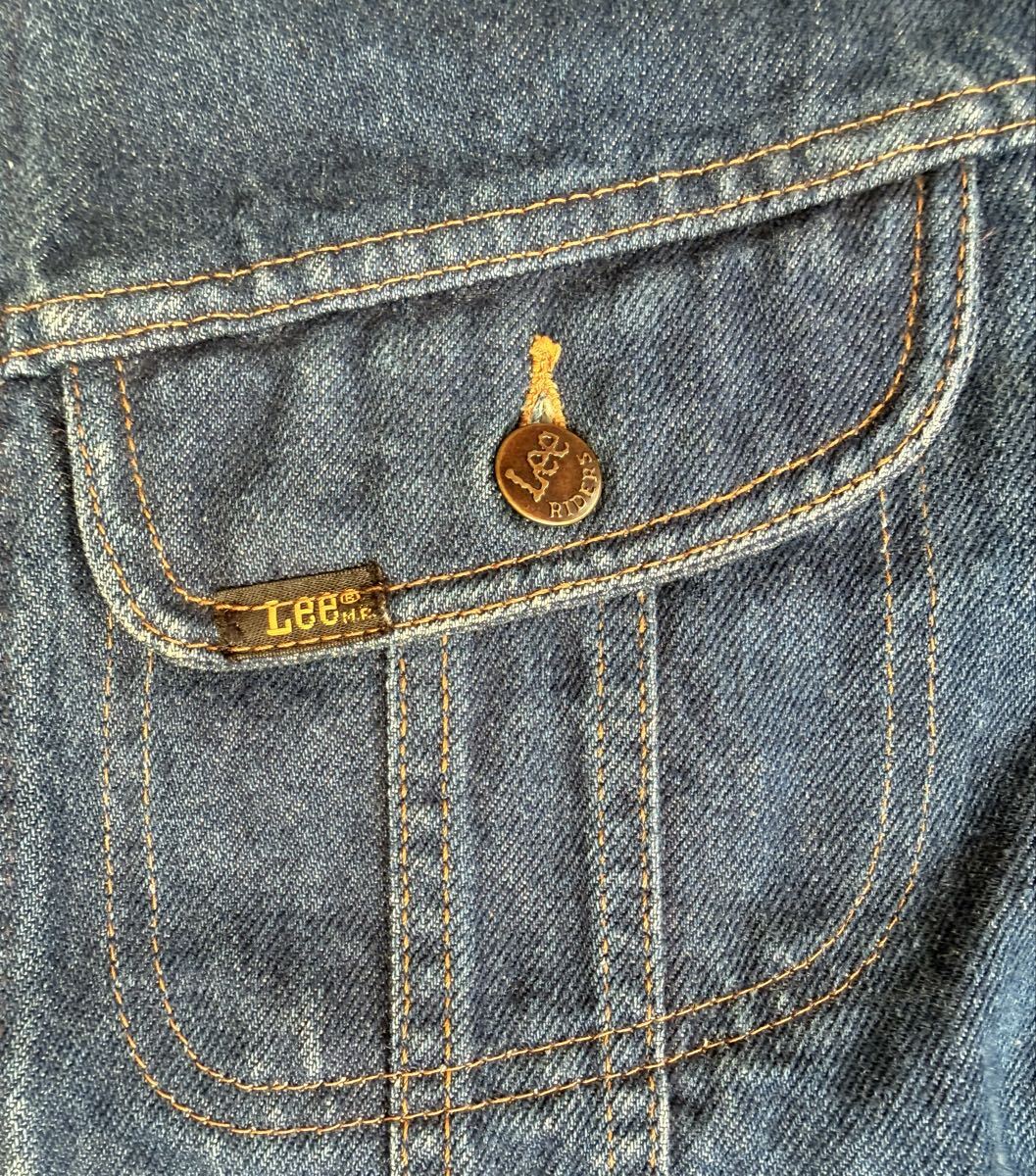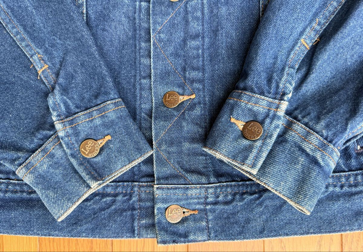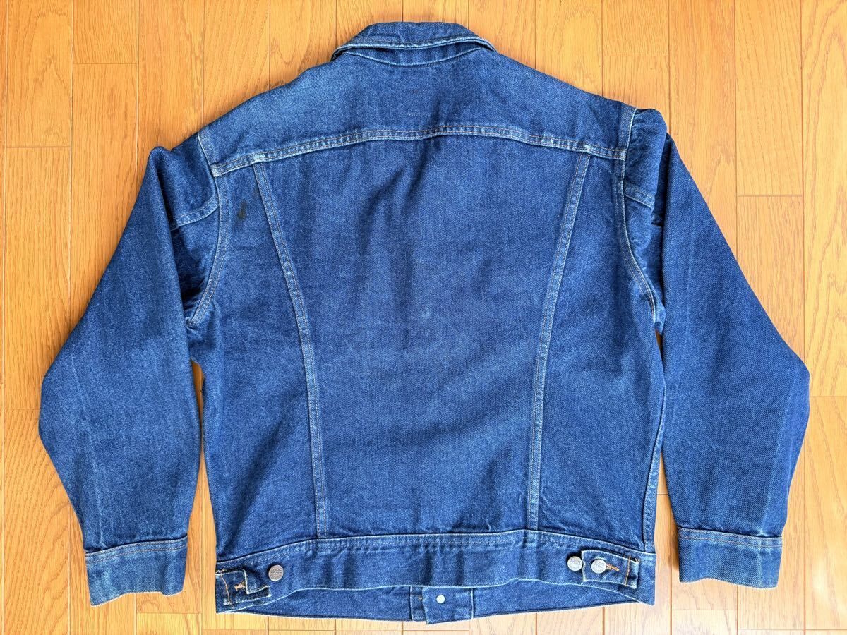 LEEのデニムジャケットです。アメリカ製パーツのメキシコ製造です。わりと傷みや擦れも少なく綺麗な個体ですが左肩に汚れあります。それ以外にも見落としている汚れがある可能性あります。