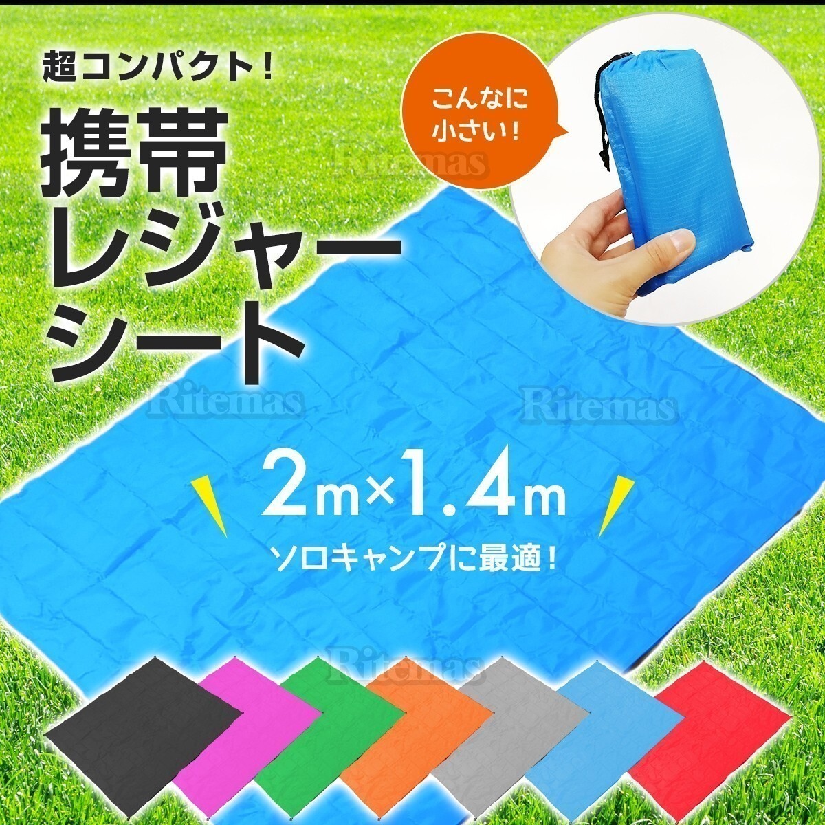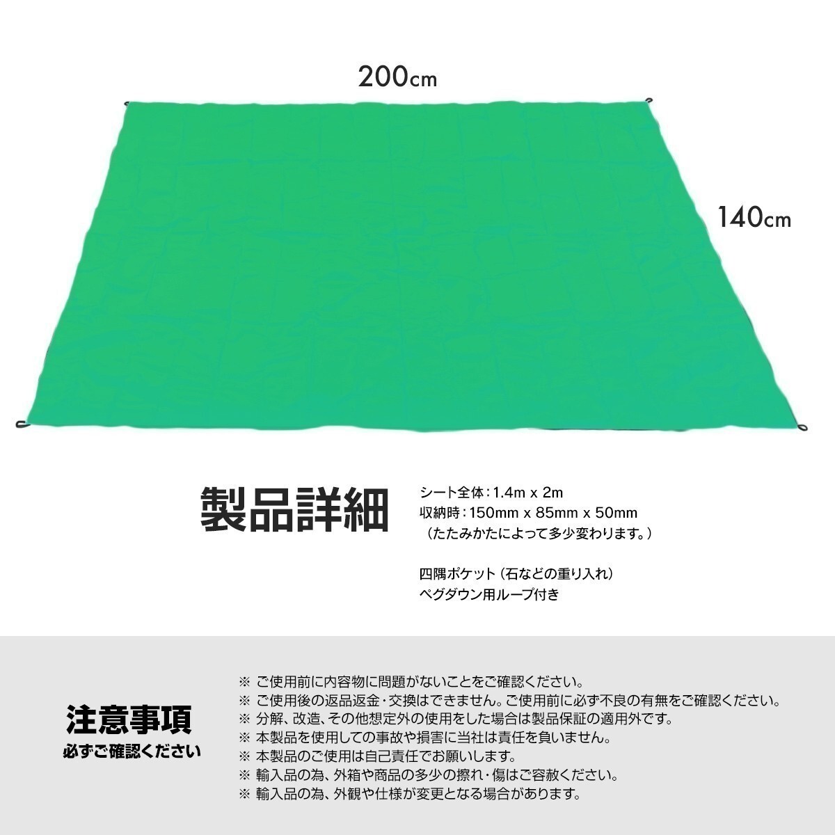 レジャーシート 1~2人用 200 x 140 cm 軽い 防水 収納袋付き お弁当 弁当 子ども マット シート 遠足 運動会 花見 ピクニック 緑 グリーン